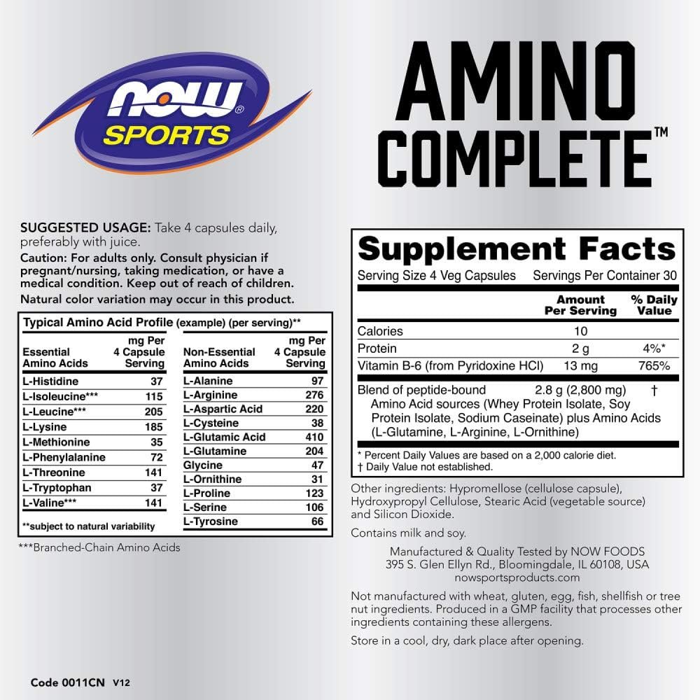 NOW® Sports Amino Complete™ offers a balanced blend of protein and free-form amino acids. Natural color variation may occur in this product.