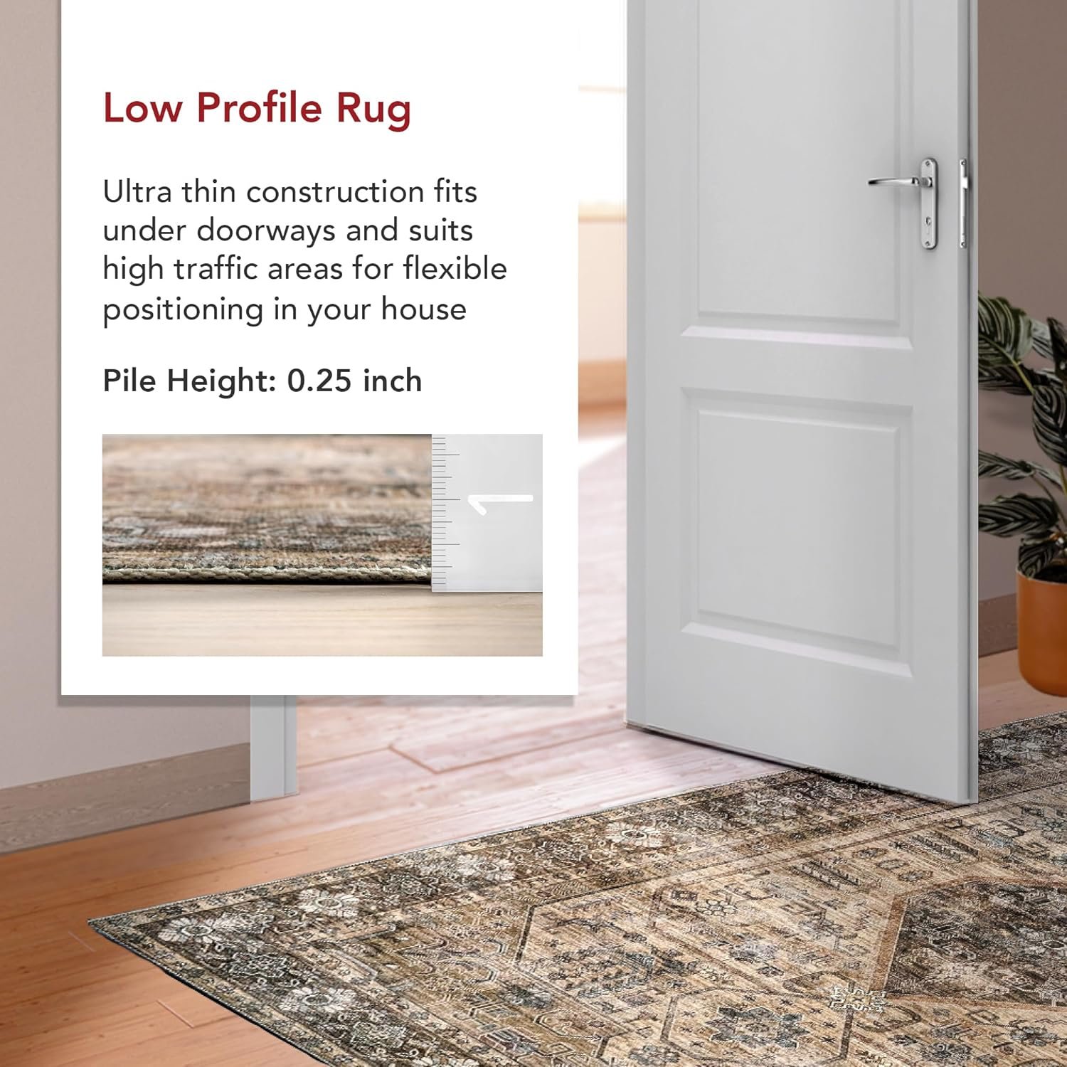 Sleek and Functional Pile Height: The low pile of this area rug brings a sleek, sophisticated touch while being easy to clean and maintain. Designed to be placed conveniently under furniture and doorways or as an indoor entrance rug, this is the perfect high traffic rug for your home.