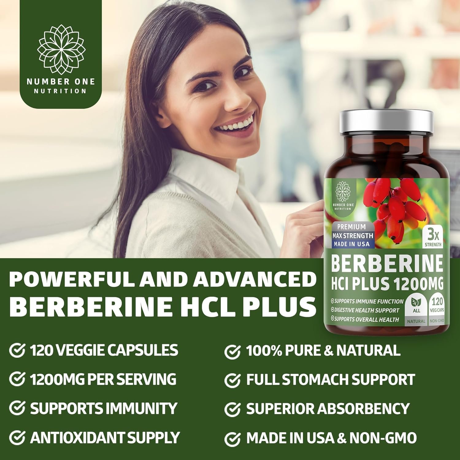 MAX POTENCY BERBERINE SUPPLEMENT. Boost your overall well-being with our extra strength Berberine HCI PLUS, delivering a potent 1200mg of Berberine HCI (Berberis Aristata) in each convenient, easy-to-swallow veggie capsule.