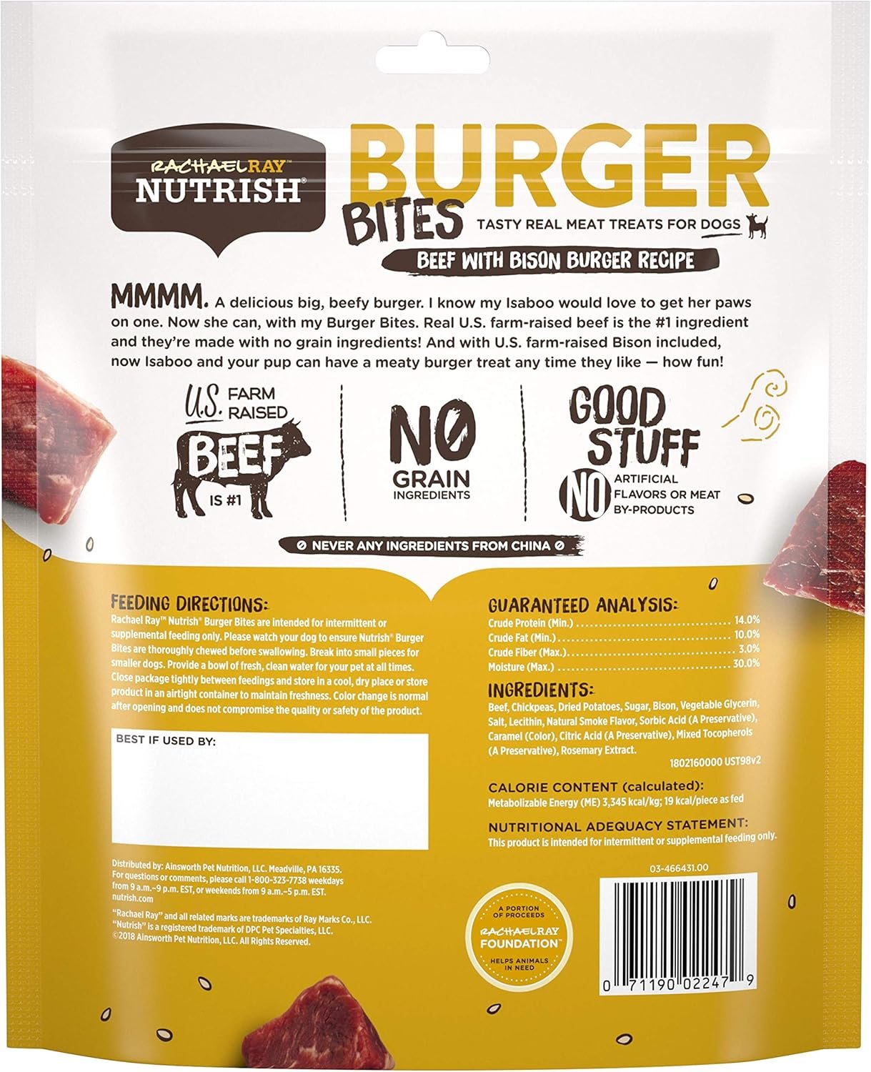 Any dog would love to get their paws on a big, juicy burger fresh off the grill. Give them the mouthwatering flavor they crave with Rachael Ray Nutrish Burger Bites Beef Recipe With Bison dog treats. These soft dog treats break apart easily for smaller mouths, making them perfect for dogs of all sizes. Every batch is safely USA cooked with the world’s finest ingredients. The number one ingredient? Real beef. There are no artificial flavors or meat by-products here—no added grain ingredients, either. Just good stuff that gets your dog drooling whenever you open the pouch. Give ‘em a try.