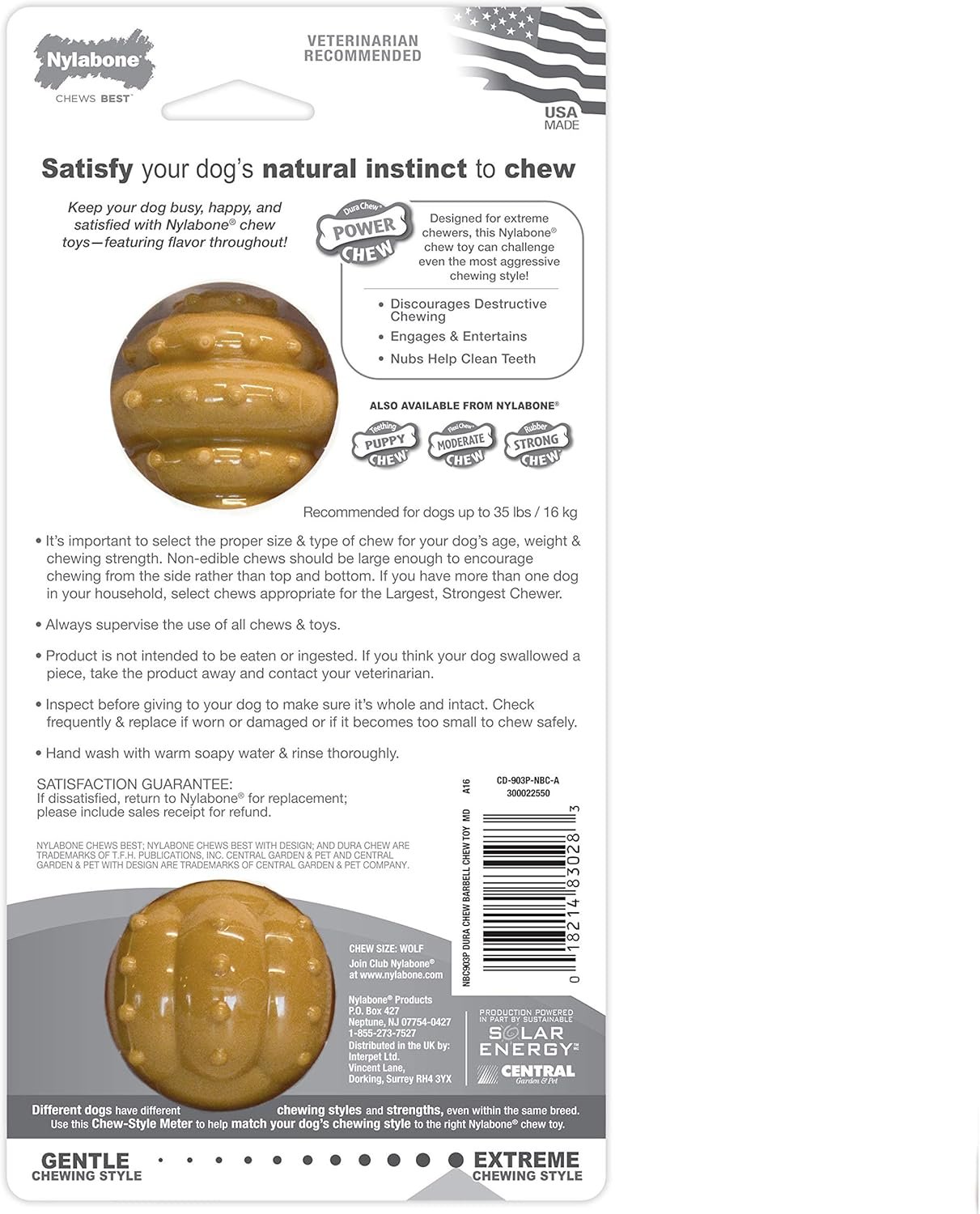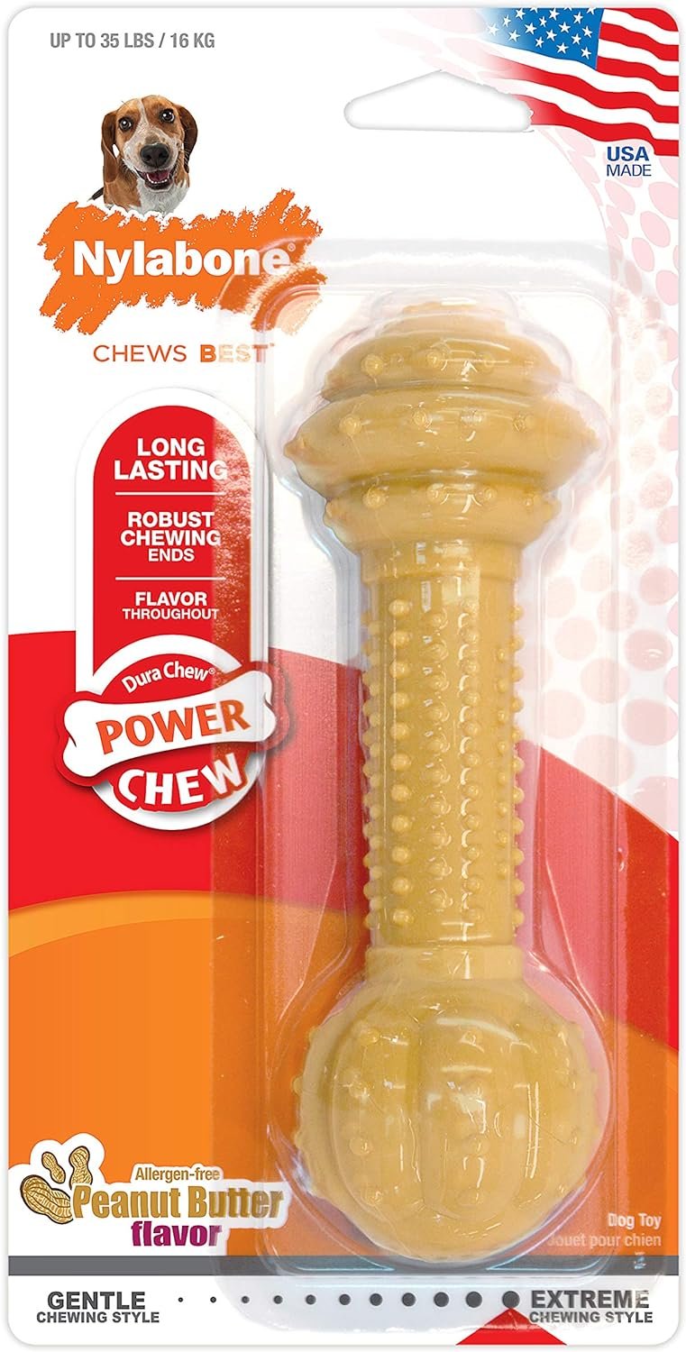 Nylabone Power Chew Barbell Bone Chew Toy for Dogs, Durable Dog Toy, Peanut Butter Flavor, Medium – Up to 35 lbs. (1 Count)