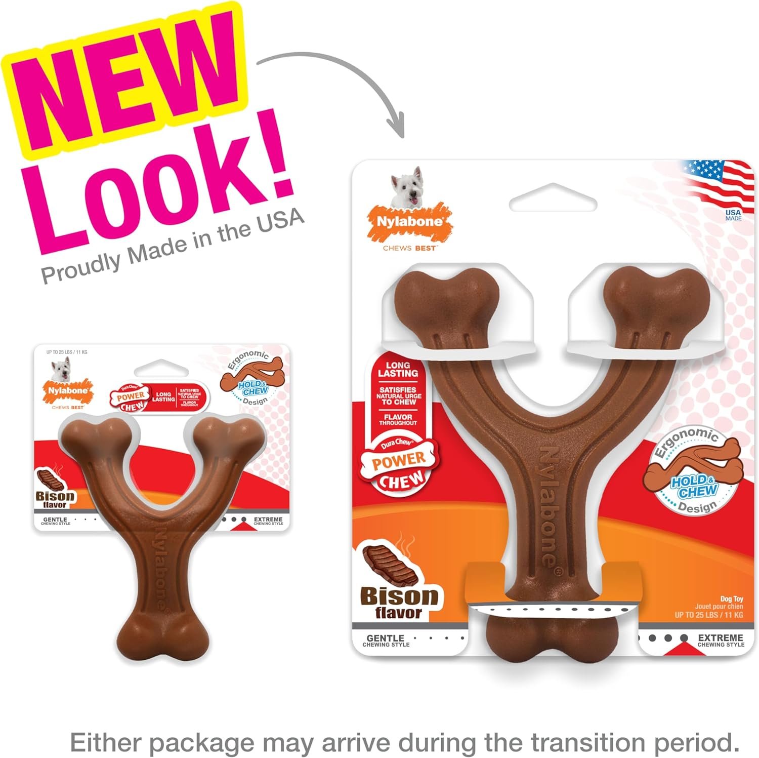 Powerful dogs wish for tough chew toys! Made with tough, durable nylon, our wishbone chew toy is the perfect dog chew toy for aggressive chewers! This long lasting chew toy features a dynamic arch shape that’s easy for dogs to grip. It also has three entertaining chewing ends to keep the fun going. With savory bison flavor throughout, this wishbone chew toy keeps dogs busy and encourages positive chewing habits. Plus, the bristles raised during chewing help clean teeth and freshen breath. What your dog chews matters! With destructive behavior among the leading reasons dogs are returned to shelters, we know healthy habits can make a life-changing difference. For 70 years, our family-founded brand continues to safely satisfy dogs’ chewing instincts and help them stay in loving forever homes!
