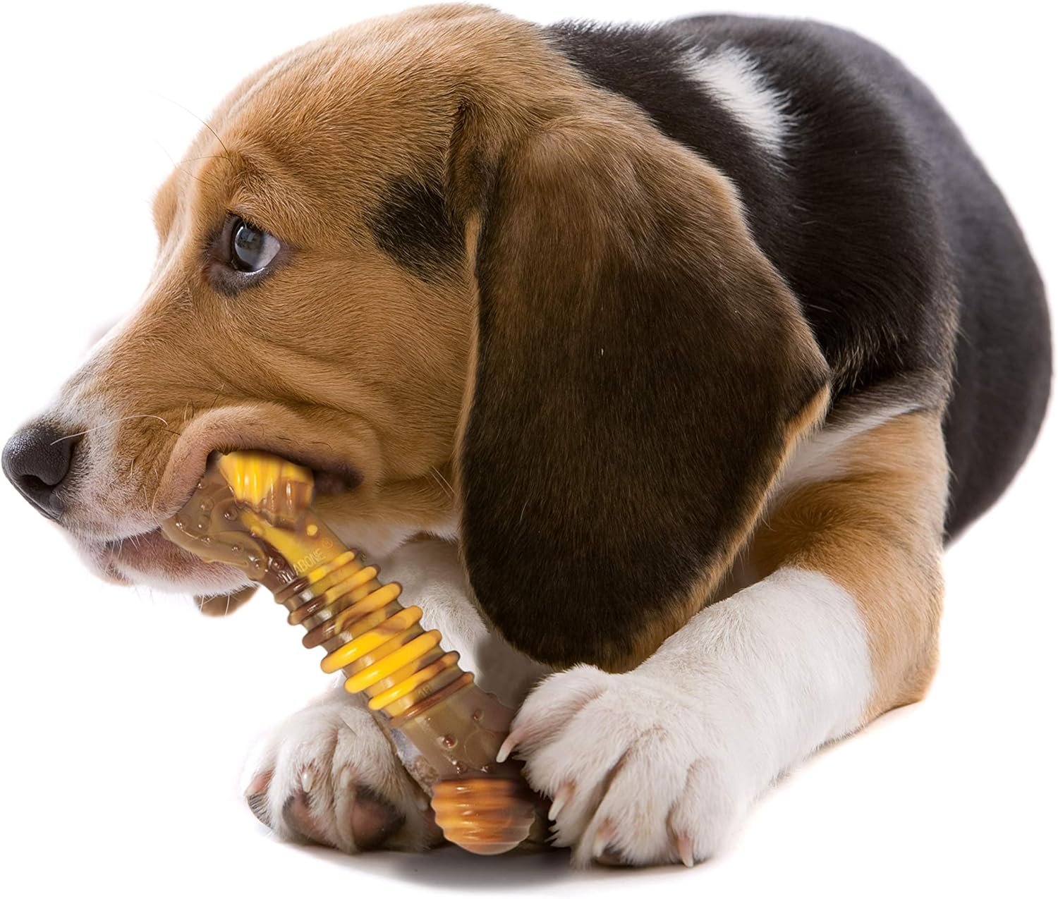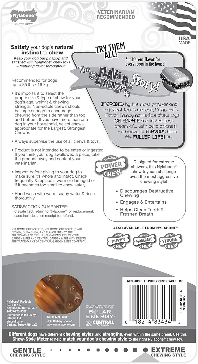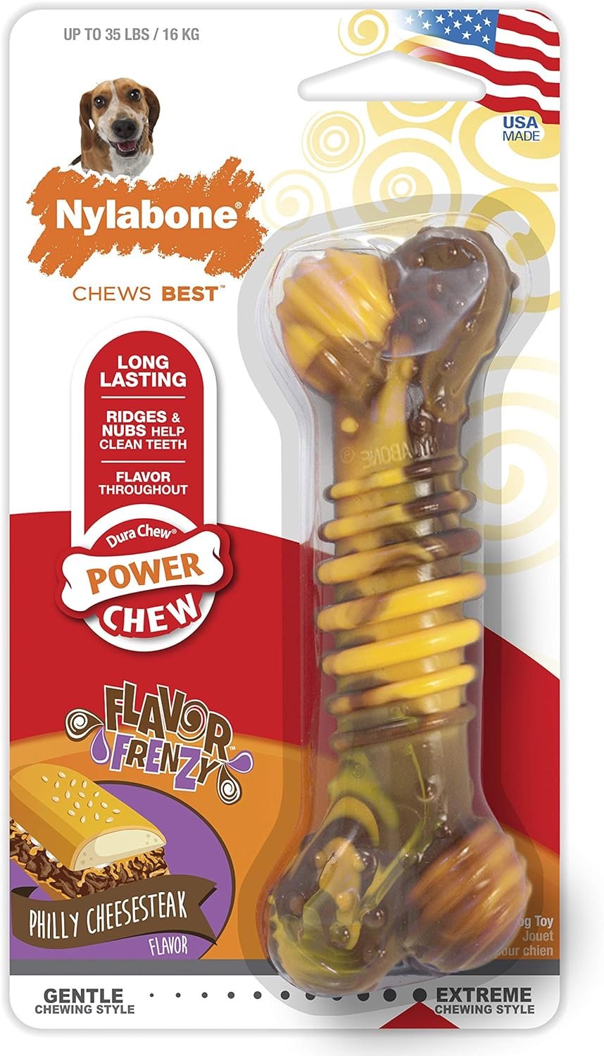 Nylabone Power Chew Flavor Frenzy Dental Bone Chew Toy for Dogs, Indestructible Chew Toys for Aggressive Chewers, Philly Cheesesteak Flavor, Medium/Wolf – Up to 35 lbs. (1 Count)