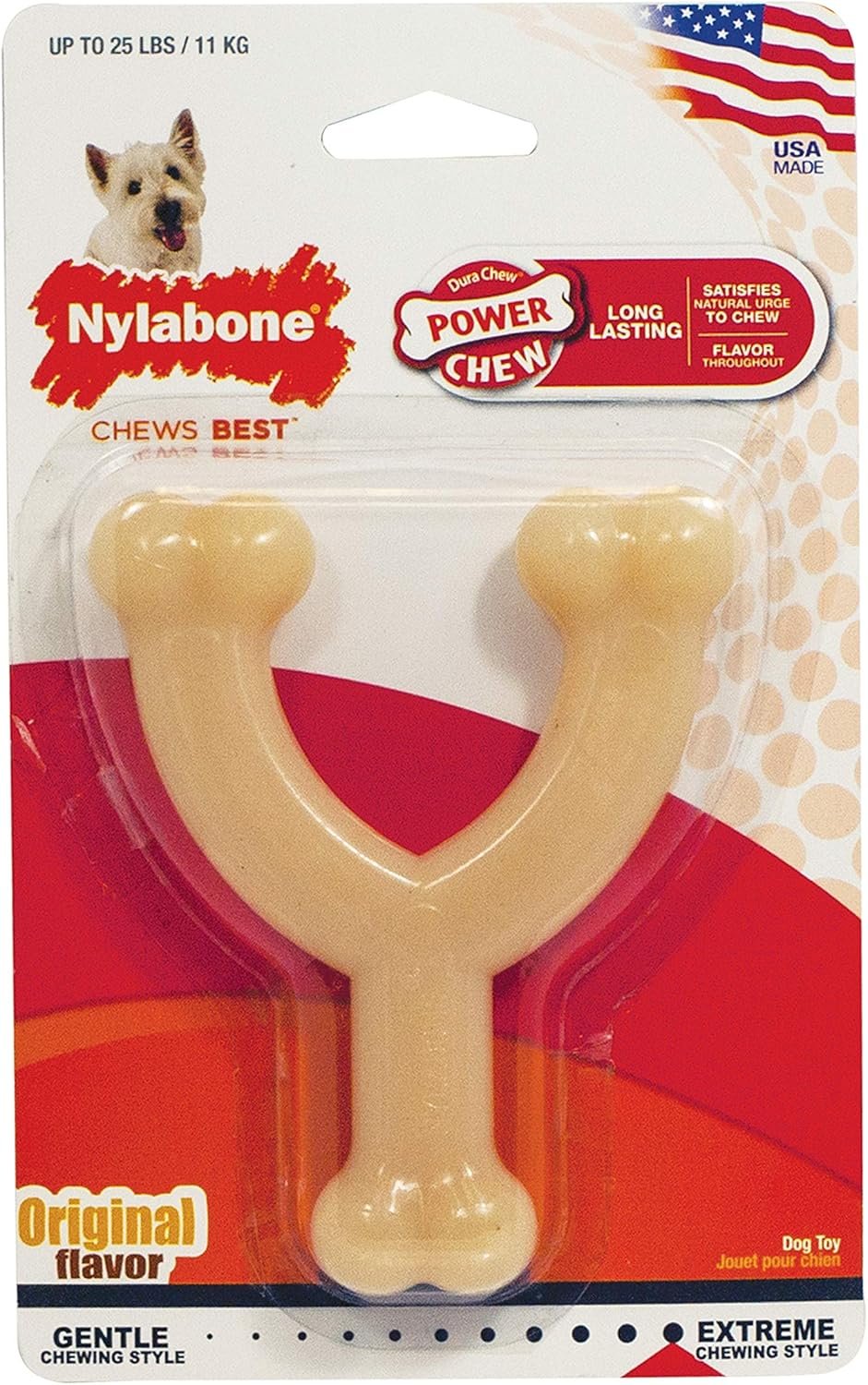 Make a wish! With more tasty flavor throughout, this wishbone satisfies moderate chewers who prefer a flexible material. Featuring 3 easy-hold chewing ends, this wishbone dog toy is made with a Gumabone texture that can bounce for added fun or be frozen for extra engagement. Plus, your dog will love the one-of-a-kind flavor medley! Whether you want to reward your furry friend, help them cope with separation anxiety, or prevent boredom, this chew toy will keep your dog engaged and promote healthy chewing habits.
