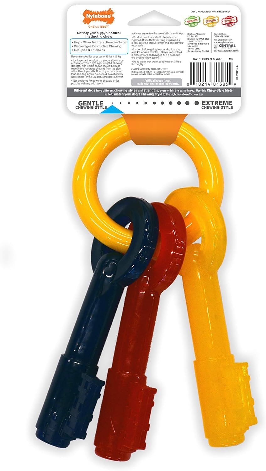 Nylabone Puppy Chew Keys Toy – Puppy Chew Toys for Teething – Puppy Supplies – Bacon Flavor, Medium/Wolf (1 Count)