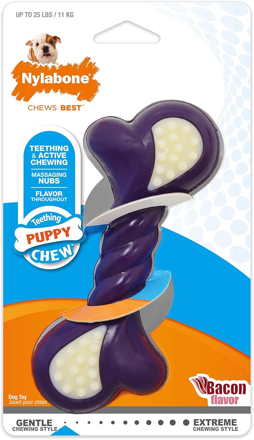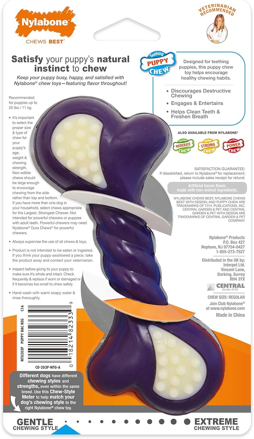This puppy chew toy is made of softer rubber to encourage the development of non-destructive play and chewing habits. It also features multiple textures for added interest. Designed for teething puppies—not recommended for adult dogs or puppies with any permanent teeth.