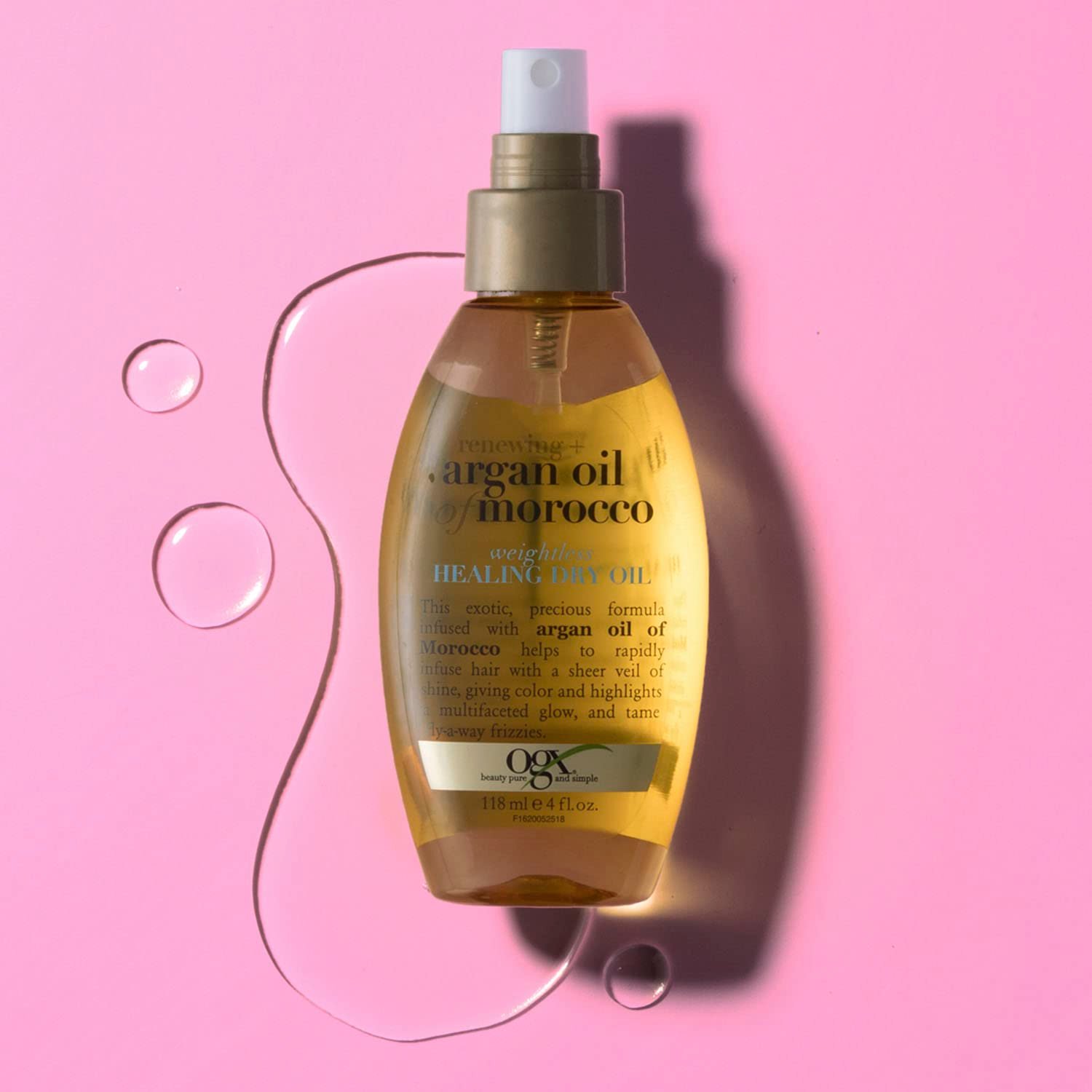 HEAL SPLIT ENDS and CONTROL FRIZZ: The 4-ounce spray bottle of OGX Renewing plus Argan Oil of Morocco Weightless Healing Dry Oil Spray helps mend split ends, smooth hair and eliminate frizzy flyaways