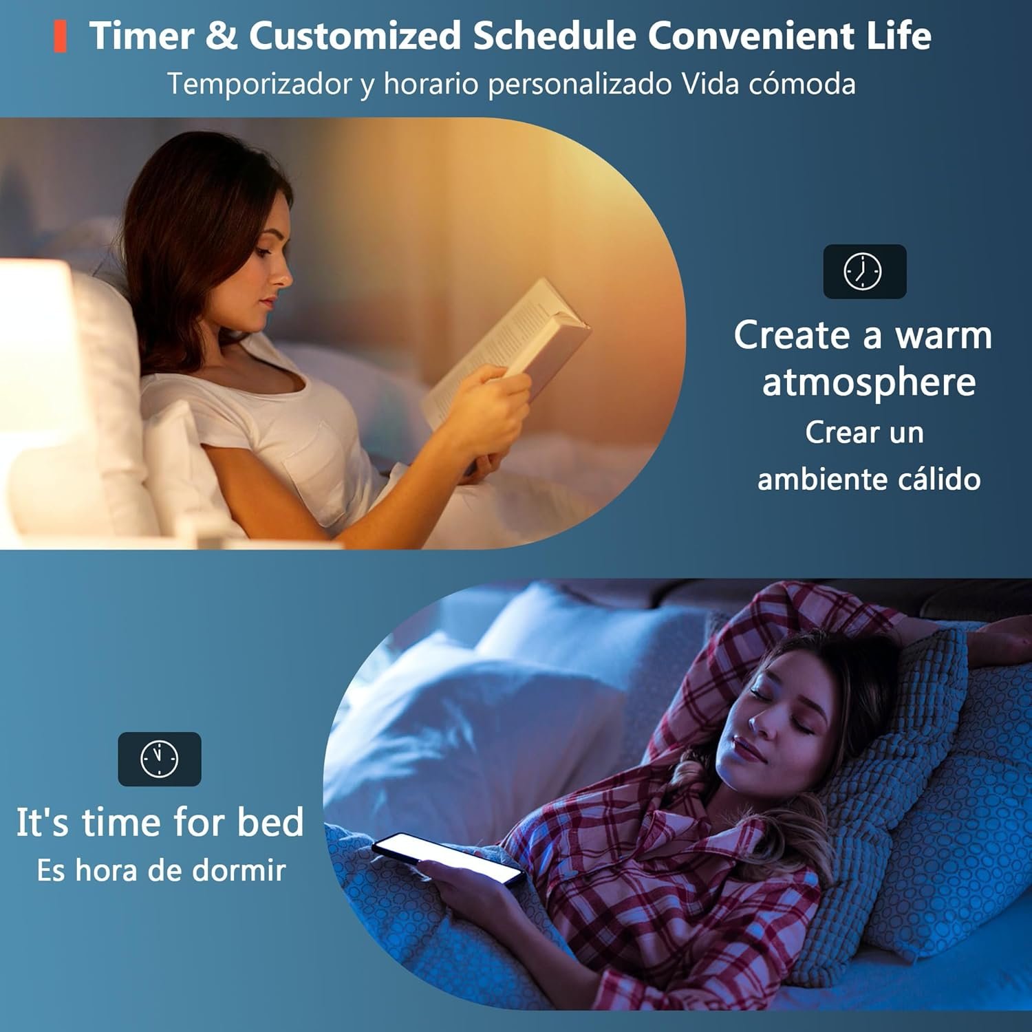 Timer and Schedule: Applying the smart light bulbs to your daily routine now is easier than ever, with timer function and modes like Sunrise & Sunset, you can set your bulbs to brighten when you wake up, and gradually dim when you fall asleep