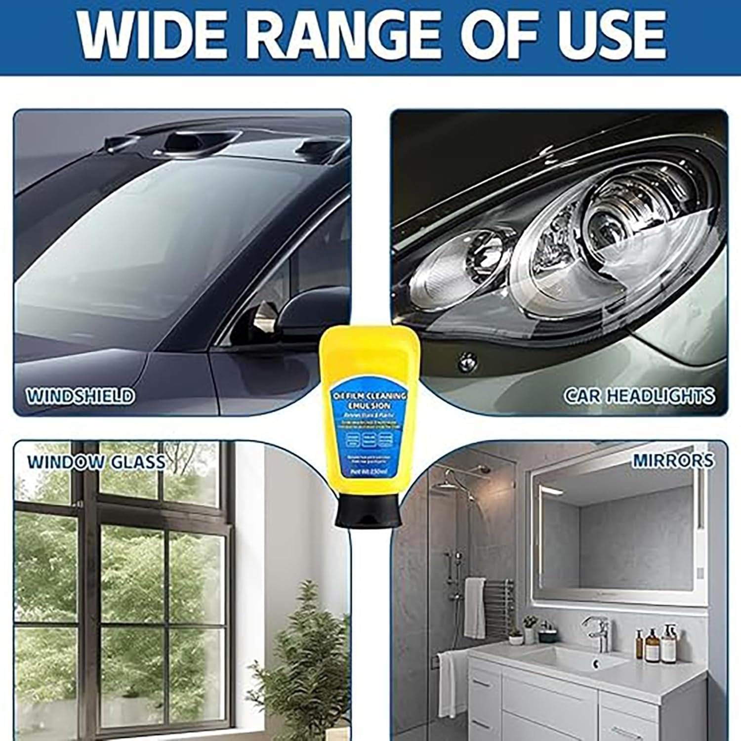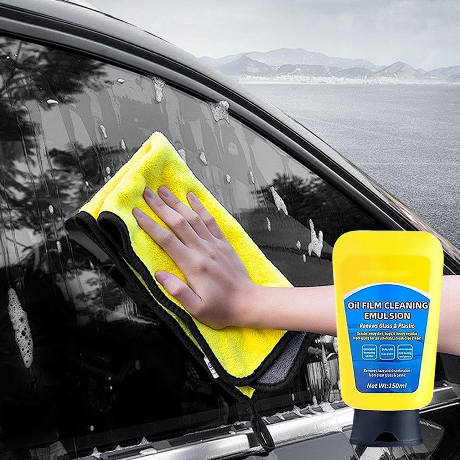 📝Simple Application Process: Just rinse the glass surface, apply the cleaner to a sponge, and wipe in an up-and-down or circular motion for even coverage. Finish by rinsing with water and drying with a towel. This method enhances visibility and wiper effectiveness for safer driving.