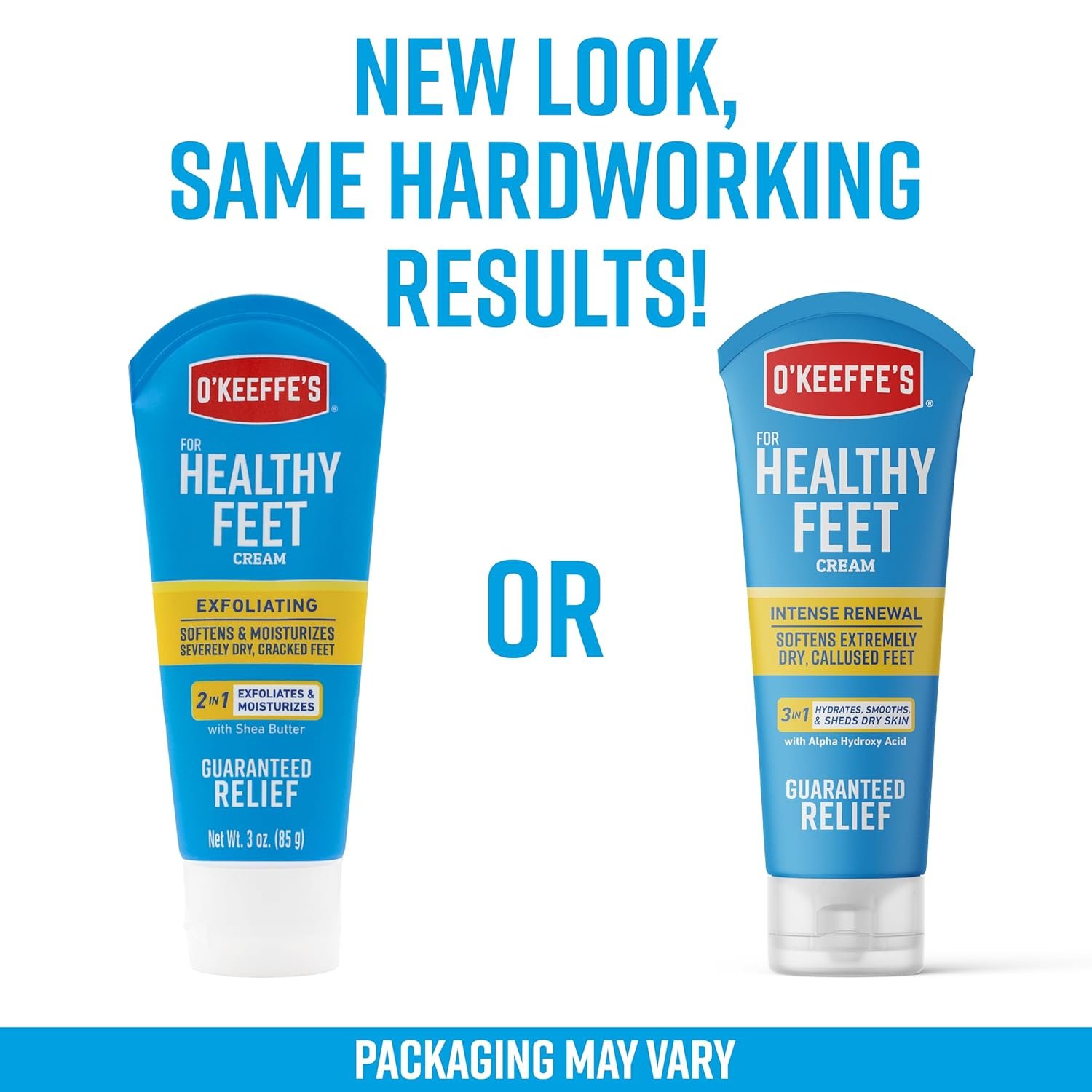 O’Keeffe’s for Healthy Feet Intense Renewal foot cream is specially formulated with Alpha Hydroxy Acid and Shea Butter to accelerate the removal of dead skin cells from the skins surface and replace lost moisture. This foot cream instantly creates a barrier on the skin’s surface that locks in moisture and keeps your skin hydrated after 1 use.