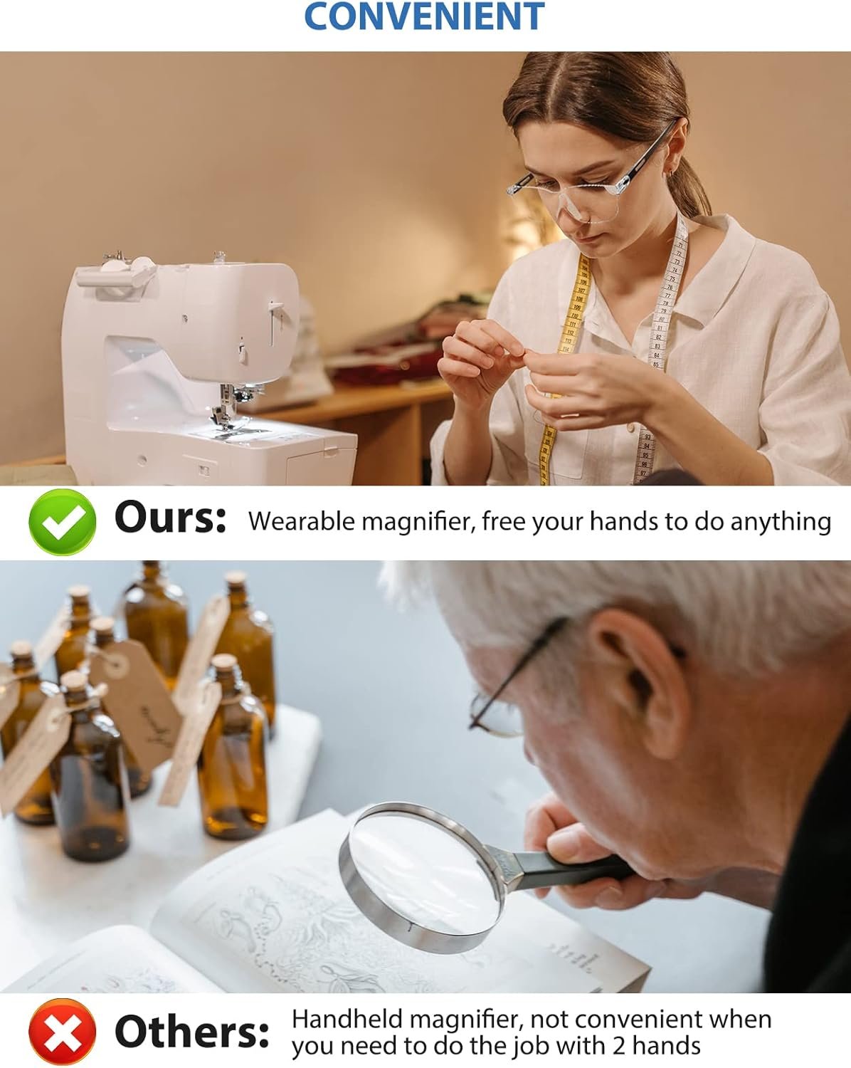 【 FIT OVER PRESCRIPTION GLASSES 】 This magnifier just acts as good as your regular glasses, which will take much convenience to you. And it can also be worn over prescription glasses, sturdy and comfortable, help you get good vision and do the detailed task easily , meet everyone’s needs.