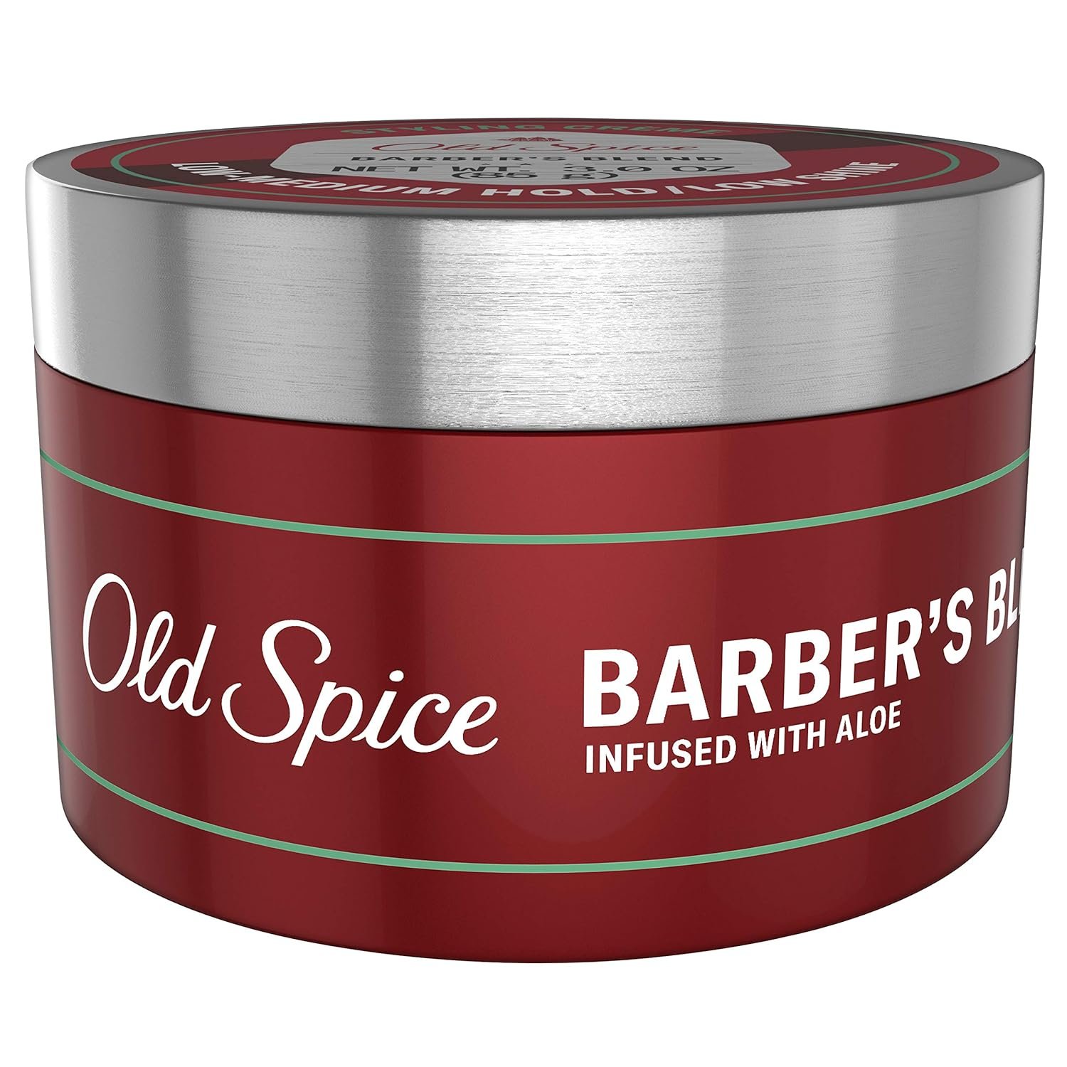 Old Spice Barber’s Blend Styling Cream provides low-medium hold and a low shine