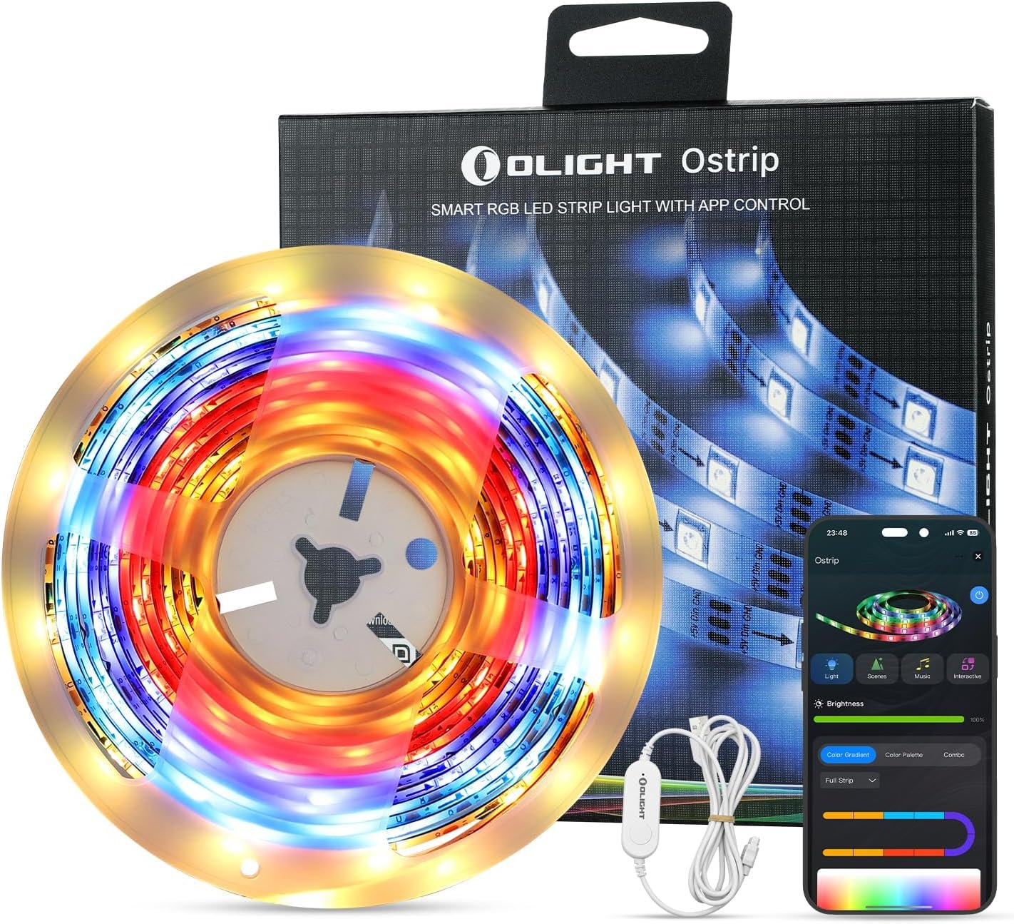 𝐒𝐦𝐚𝐫𝐭 𝐀𝐏𝐏 𝐂𝐨𝐧𝐭𝐫𝐨𝐥: Brightness, color, and mode can be easily controlled via the Smart App at a range of up to 25 meters, choosing from thousands of colors or 66 preset scenes (including 44 named scenes and 22 color combinations), as well as customizing colors by paragraph to create the perfect ambiance