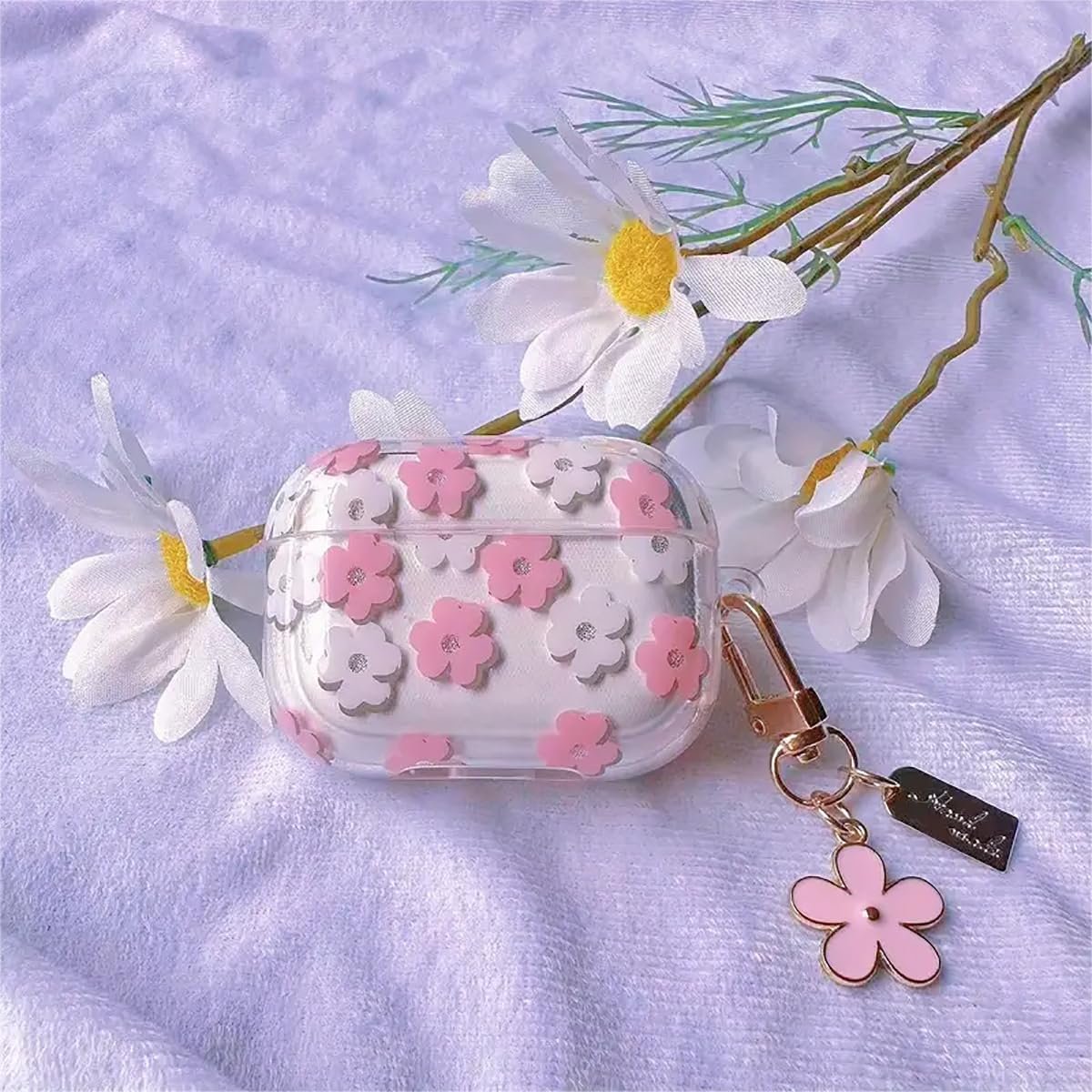 ✦Supreme Drop Protection✦Flower AirPods pro 2nd gen case cover protects your valuable AirPods pro from scratches, scrapes, bumps, or falls. The AirPods pro clear case also comes with a metal floral keychain to easily hook it on to your bag, belt loop or keys.