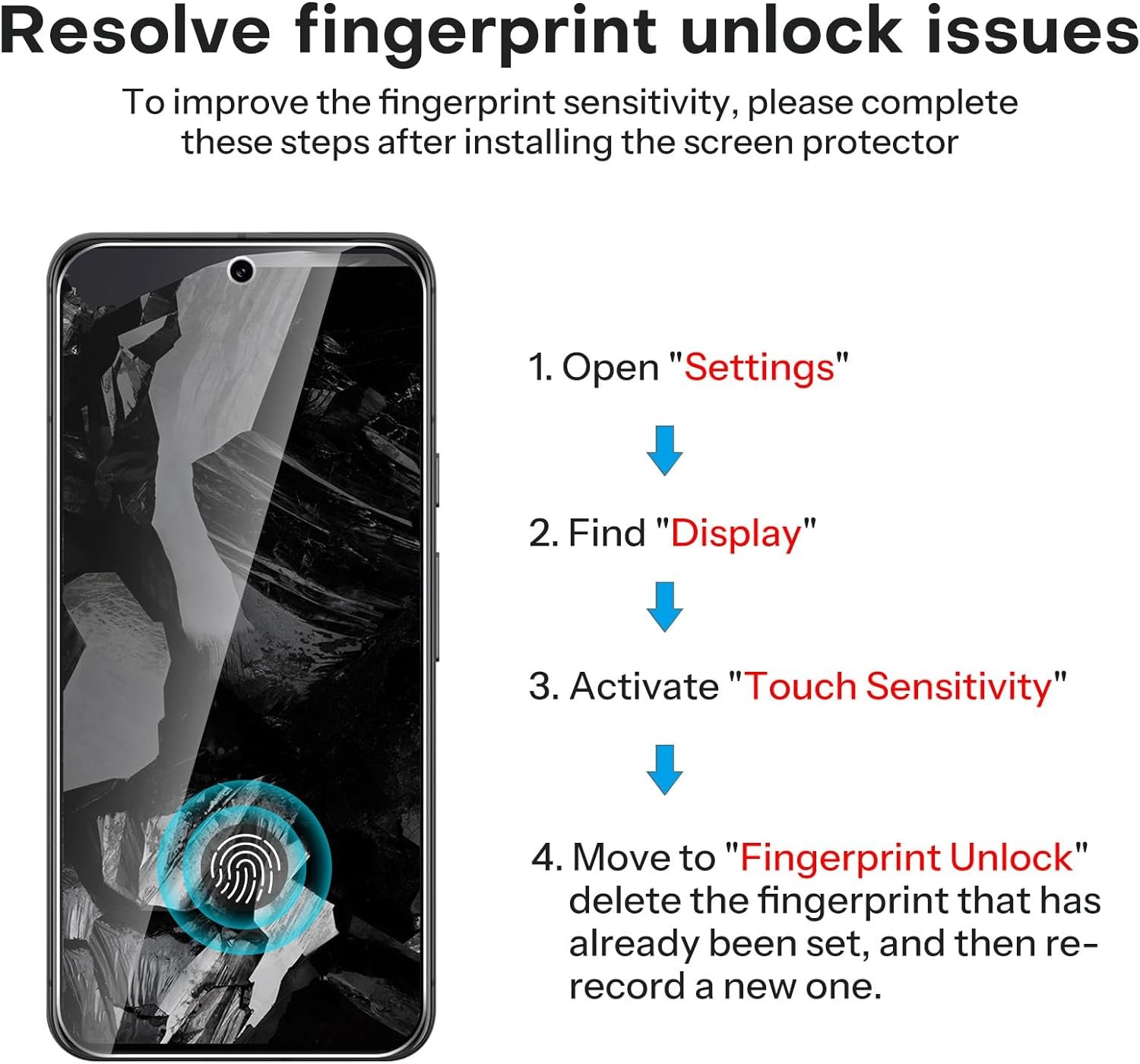 Fingerprint Unlock: Adopting advanced technology and utilizing a special adhesive formula, the tempered glass screen protector for Google Pixel 8a ensures an effortless fingerprint unlock and optimal touch sensitivity