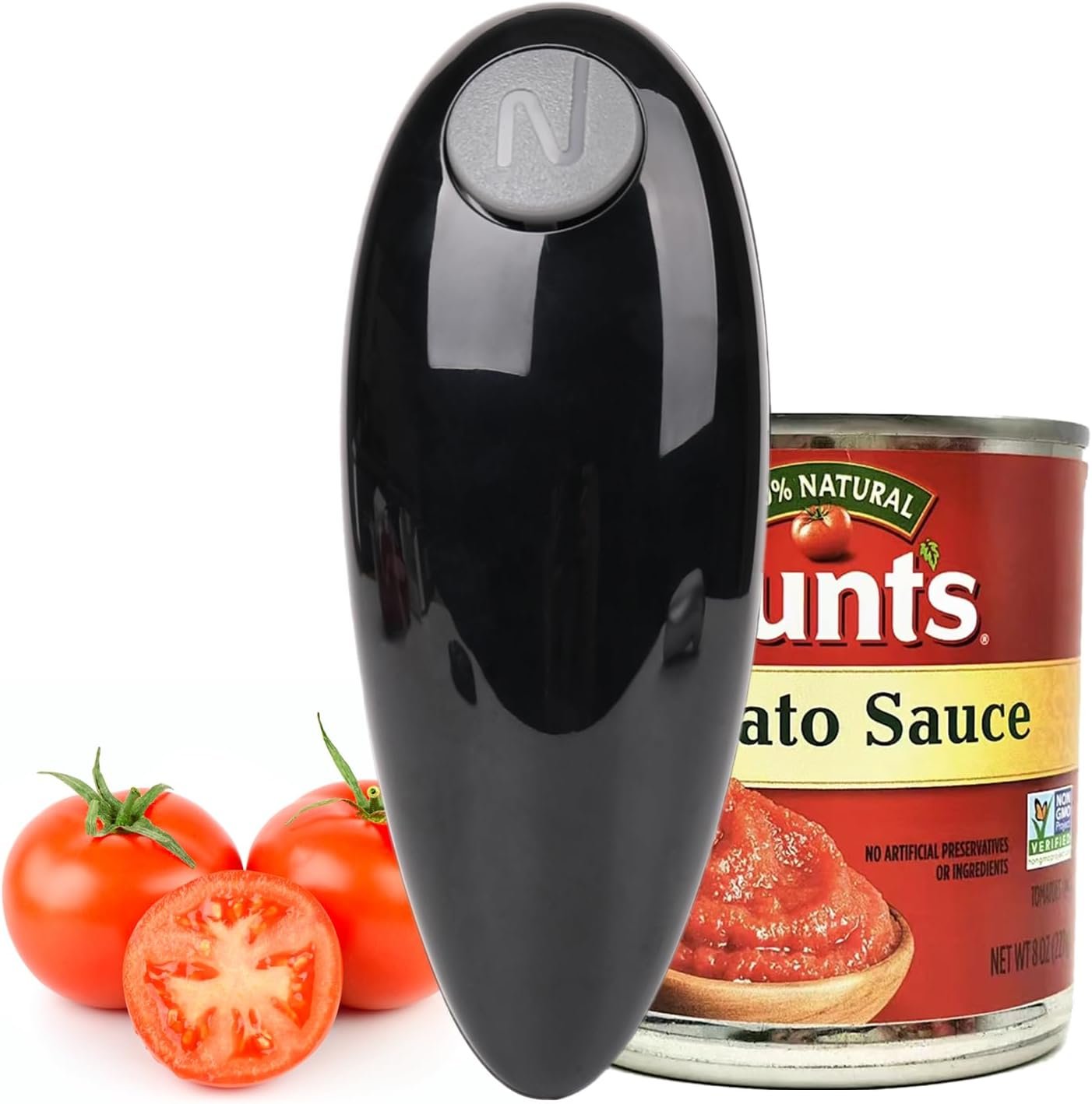 One Touch Electric Can Opener – Automatic Can Openers with Smooth Edge, Free Handheld Electric Can Opener for Kitchen, Seniors (Black)