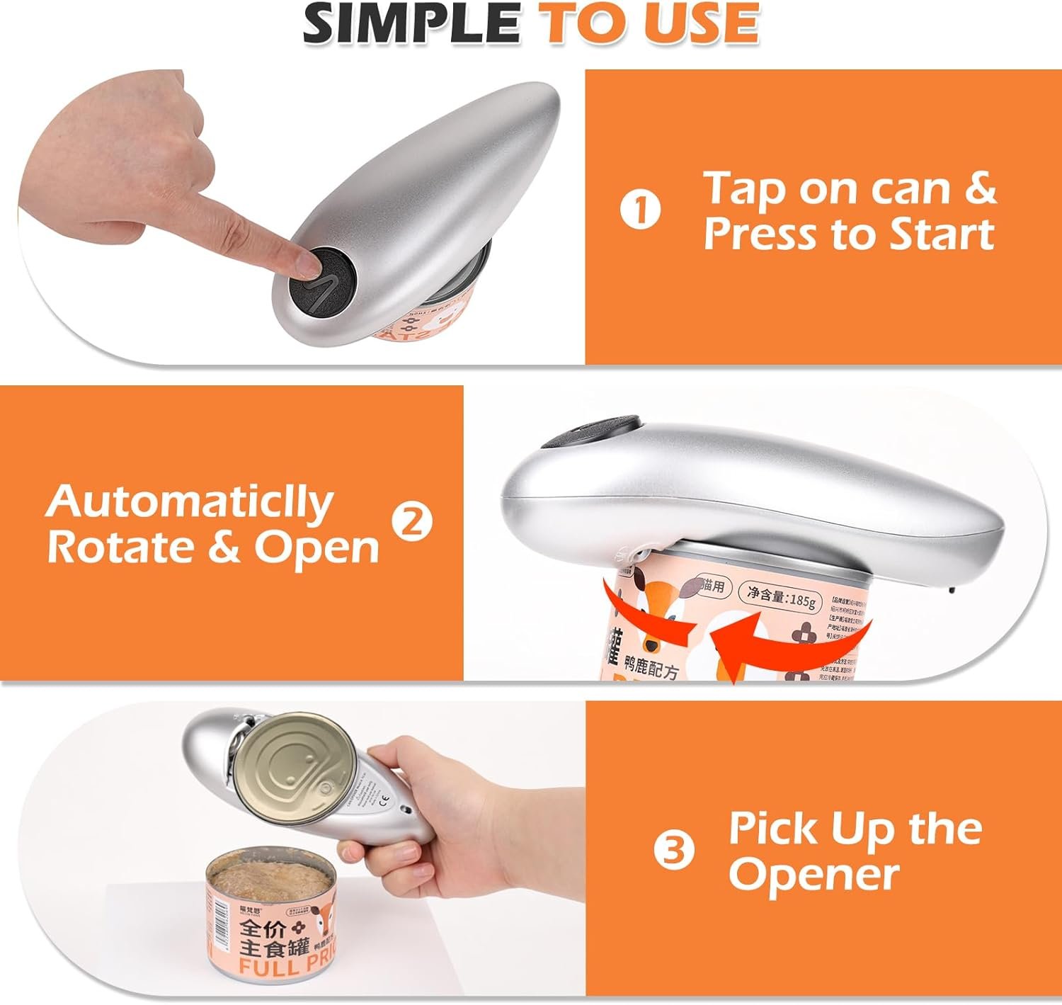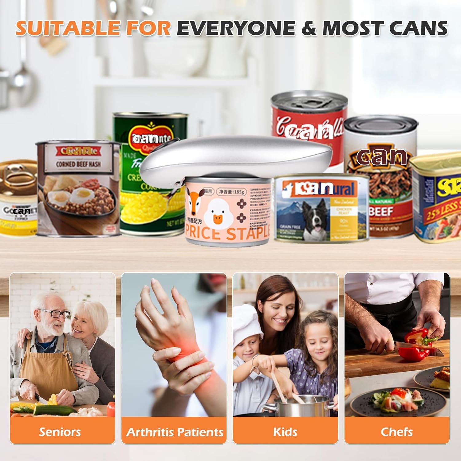 【Handy Can Opener】- Designed for seniors with arthritis, this can opener features an easy start button and a reversal function for stuck lids. A thoughtful gift for elderly family members, ensuring safe and independent use.