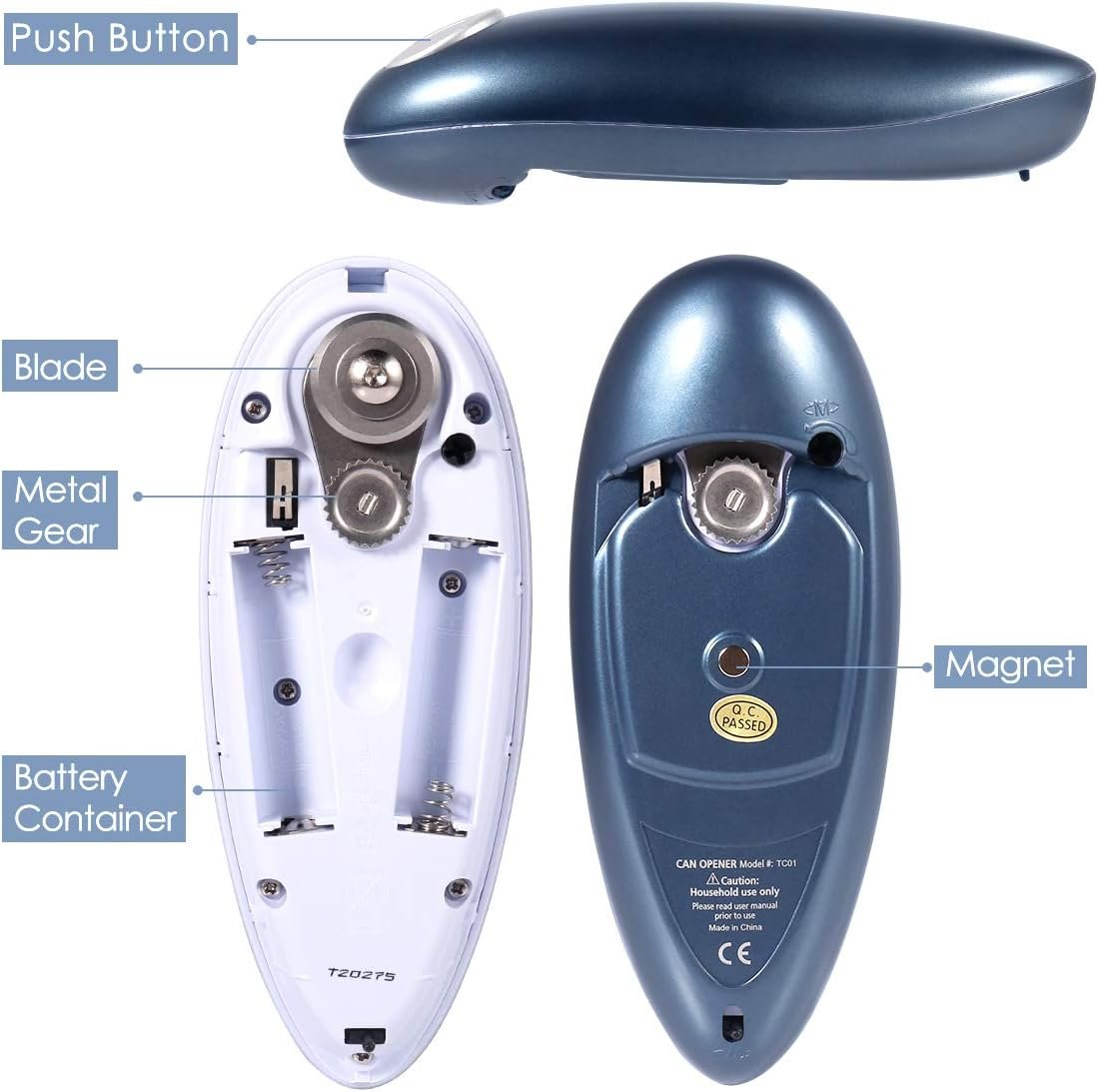 Battery Operated: The battery-operated design makes this can opener highly portable. Take it on picnics, camping trips, or even use it in different rooms without the need for a power outlet. Its convenience and flexibility make it an ideal choice for on-the-go use.r even use it in different rooms without the need for a power outlet. Its convenience and flexibility make it an ideal choice for on-the-go use