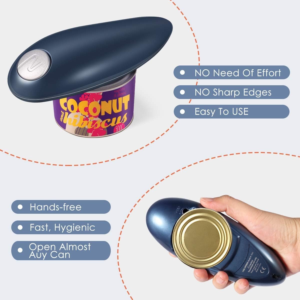 One-Touch Convenience: Operating this can opener is a breeze. With just one touch, it effortlessly opens cans of all sizes