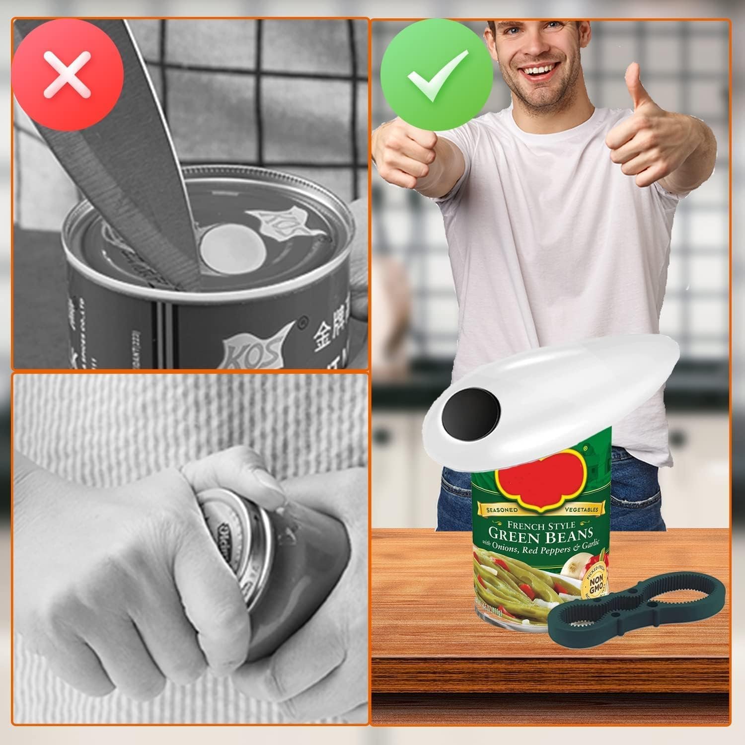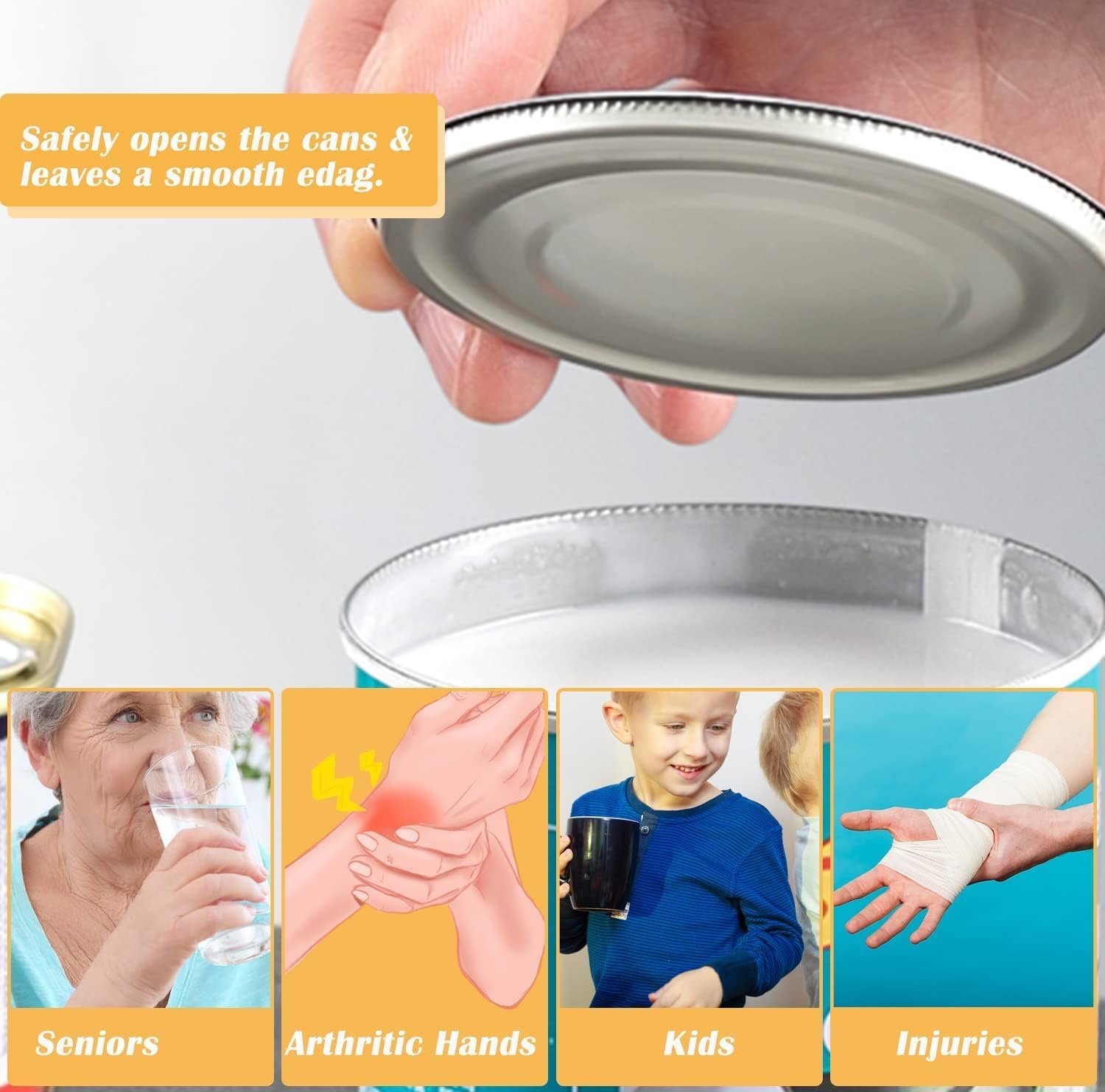 【Safe for your hands】- Opening cans with a manual can opener is not only tedious, but you can also cut your hands if you are not careful. With this automatic can opener, the edges of the cans are smooth and flat, so you can avoid cuts.