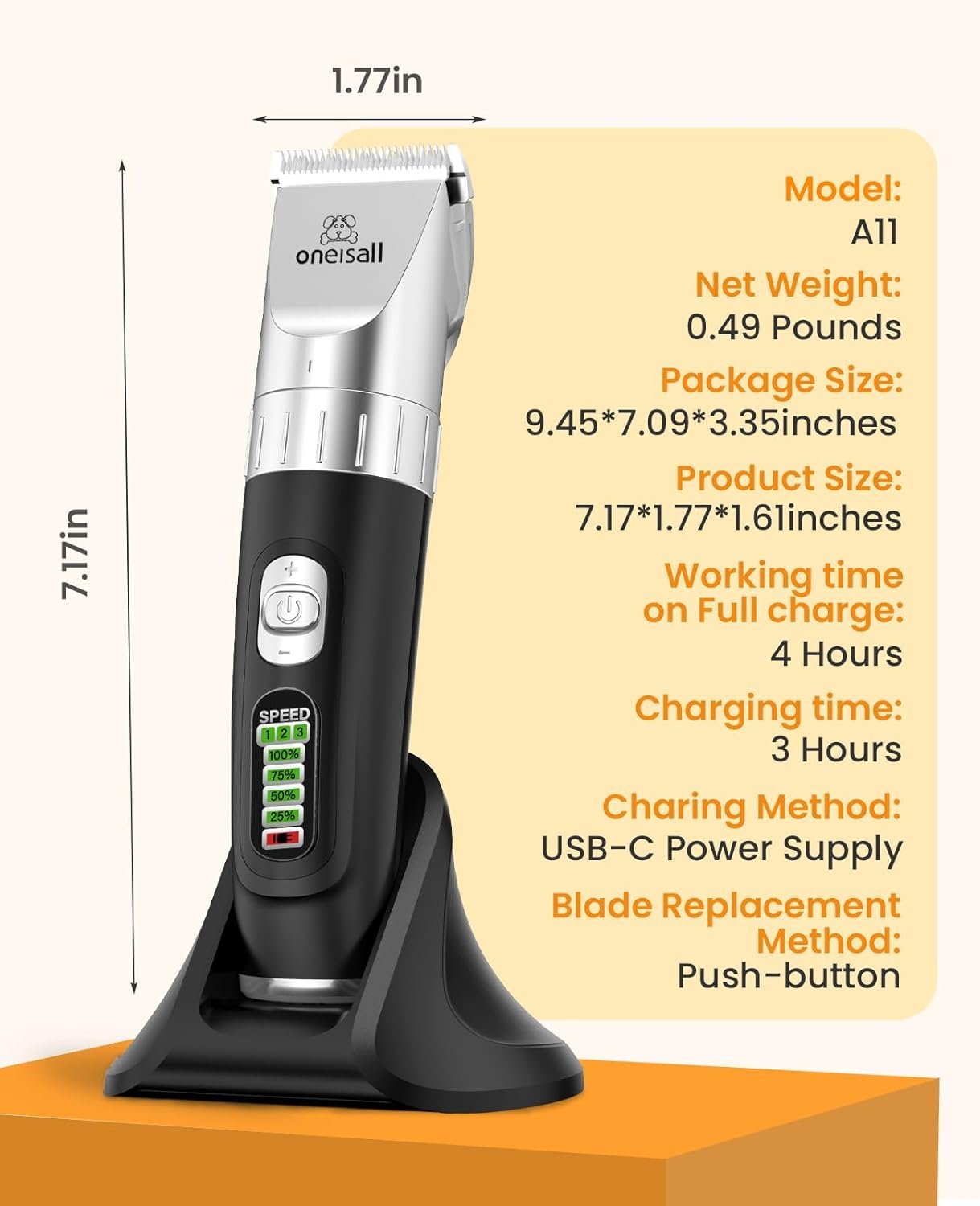 Versatile Combs for Varied Needs:oneisall pet clippers comes with multiple-sized combs capable of handling various hair types and lengths, accommodating diverse grooming requirements. Meets all your pet’s styling needs