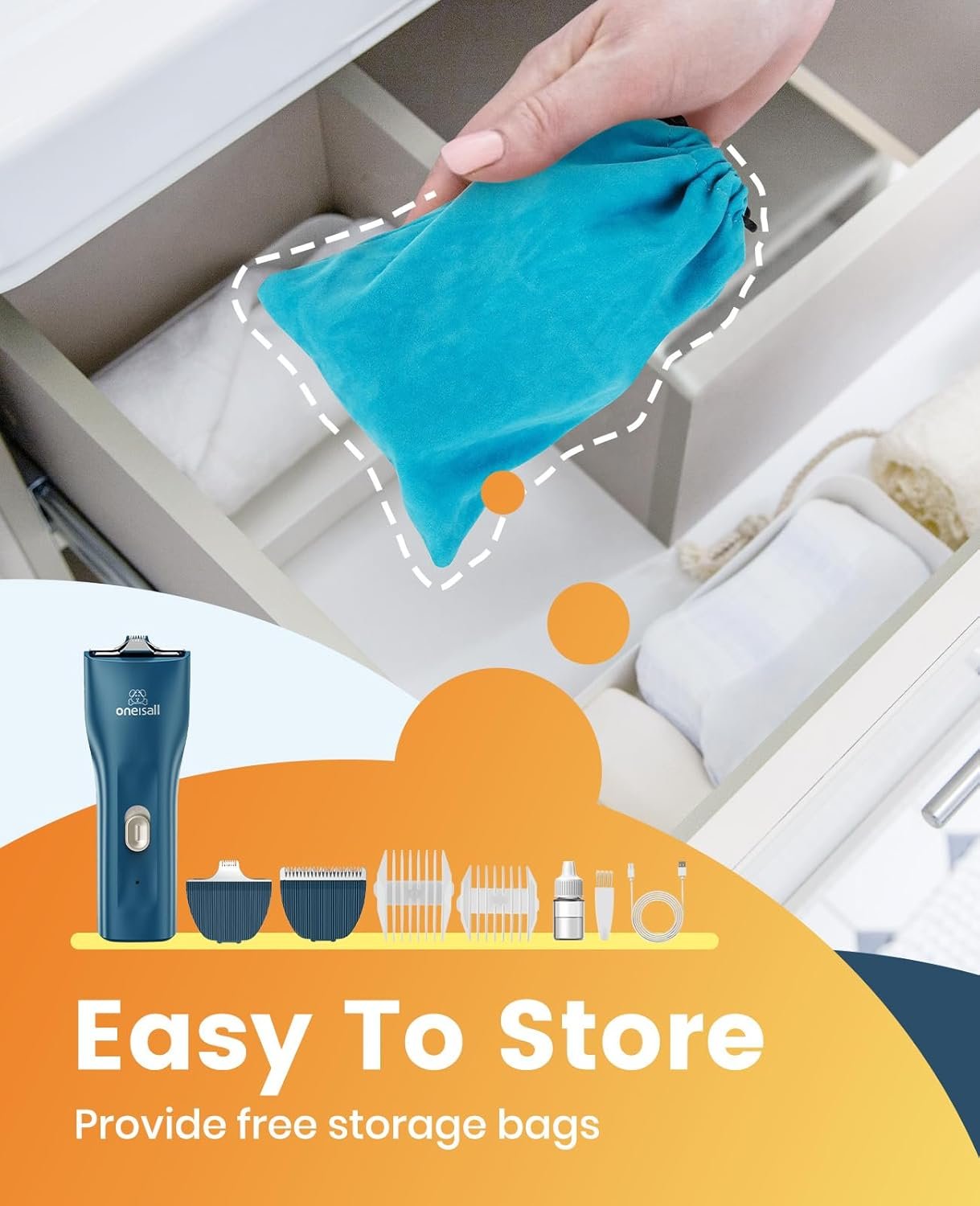 Trimmed Clean and Fast: Cat hair clippers is the combination of powerful motor plus sharp stainless steel head and safe ceramic head, pet shaver brings a smooth and unhindered grooming experience. Oneisall pet shaver is safe and efficient, with limit comb cuts cleanly without harming your pet. Thanks to its accompanying storage bag, making organization and portability a breeze.