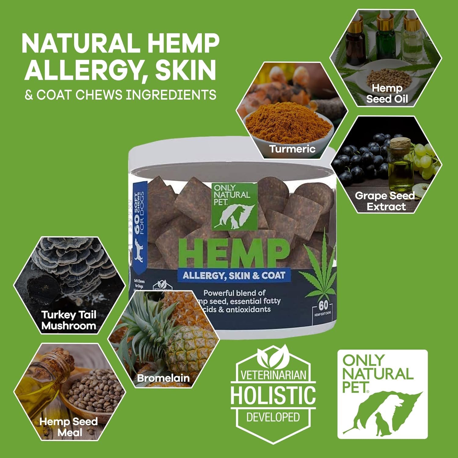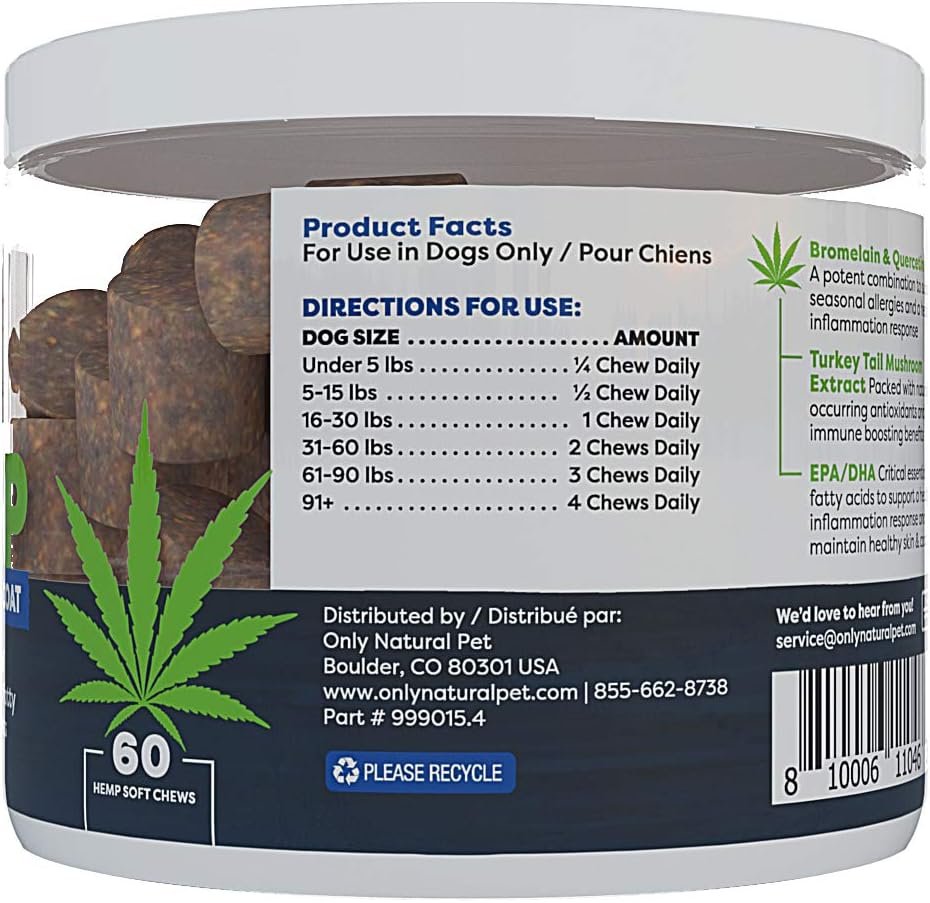 DELICIOUS & EASY: Our Dog Hemp Allergy Chews are great-tasting and convenient way to support your dog’s health. Follow dosage based on weight & enjoy the many benefits of this all-natural supplement.