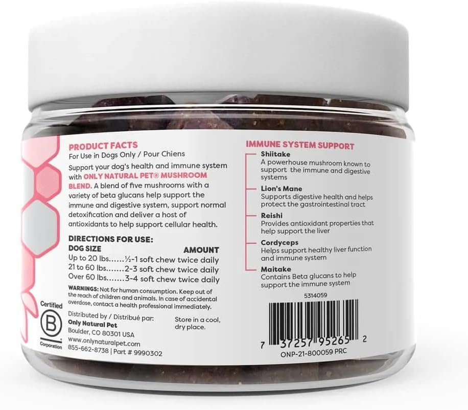 QUALITY AND NATURAL INGREDIENTS – Only Natural Pet Mushroom Blend Immune System Support Supplement For Dogs are made with natural ingredients and are formulated in a lab-tested facility, ensuring a high-quality product that you can trust for your pet’s well-being.