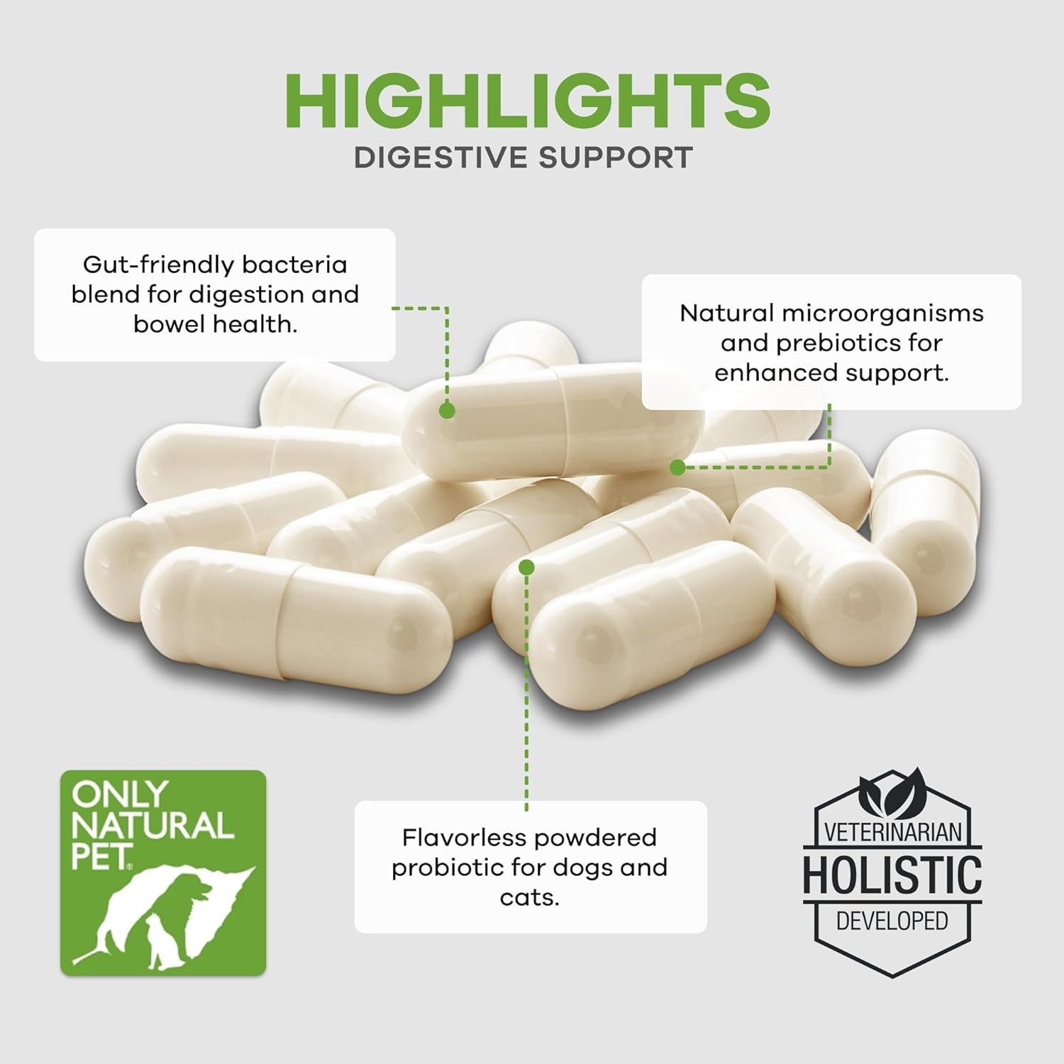 OPTIMAL DIGESTIVE BALANCE: Only Natural Pet’s Probiotic Blend fortifies your pet’s intestinal tract health, supplying essential “friendly” bacteria for enhanced digestion and bowel health, in line with the Digestive Intestinal Tract Health Enzyme Formula.