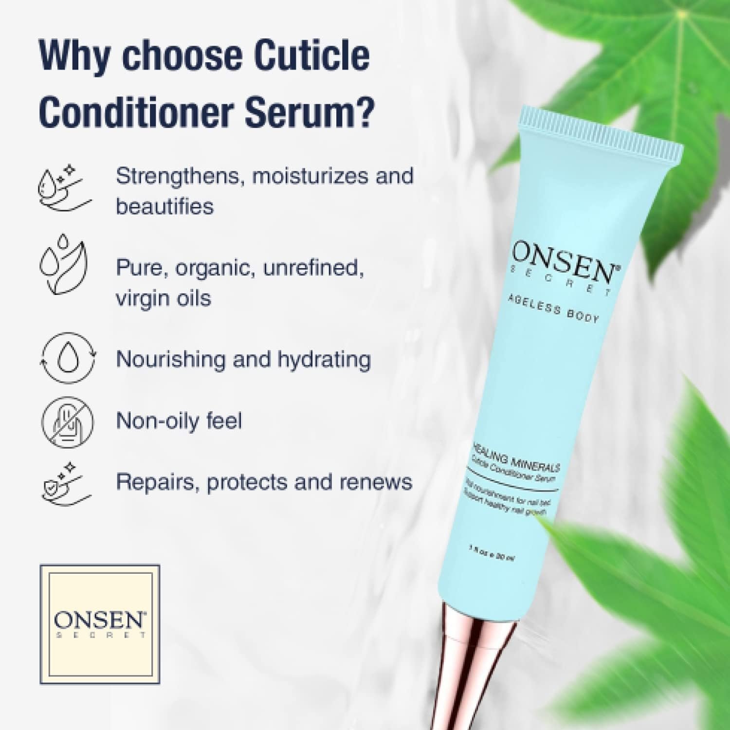 【RICH IN JAPANESE HOT-SPRING HEALING MINERALS】– After many years of research and spending time in Japan to discover the mystery behind the ancient Japanese beauty, we found the Hot Spring minerals that activate inner healing in your body. Those minerals have become a core value of every Onsen products. Together, with very carefully added ingredients, we add an extra boost to all our products, which deliver incredible results to your nails fast