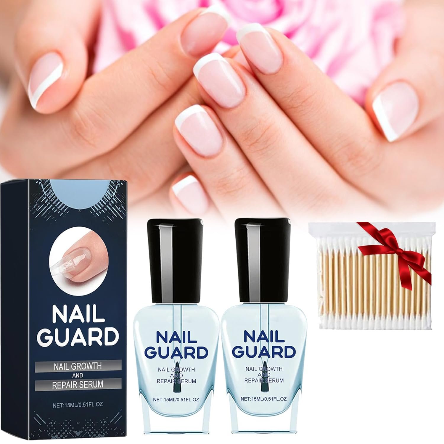 30 pcs cotton swabs Experience the transformative power of OnyxoGuard Nail Growth and Repair Serum! With its unique formula, it strengthens, hydrates, and improves the appearance of your nails, while promoting rapid growth and preventing flaking. Ideal for all nail types, OnyxoGuard Nail Growth and Repair Serum is a must-have for anyone looking to achieve healthier, more beautiful nails.