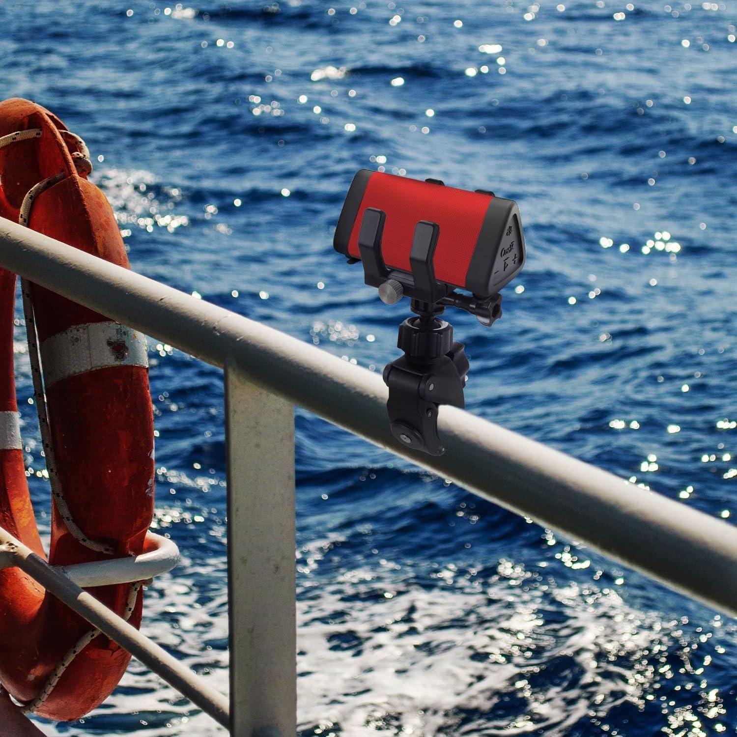 VERSATILE BRACKET AND MOUNT – Secure your speaker in place with the sturdy bracket and clamp mount. Attach it effortlessly to the railing of your golf cart, kayak, UTV, mountain bike, stroller, walking cart, trolley, beach umbrella, or electric scooter.