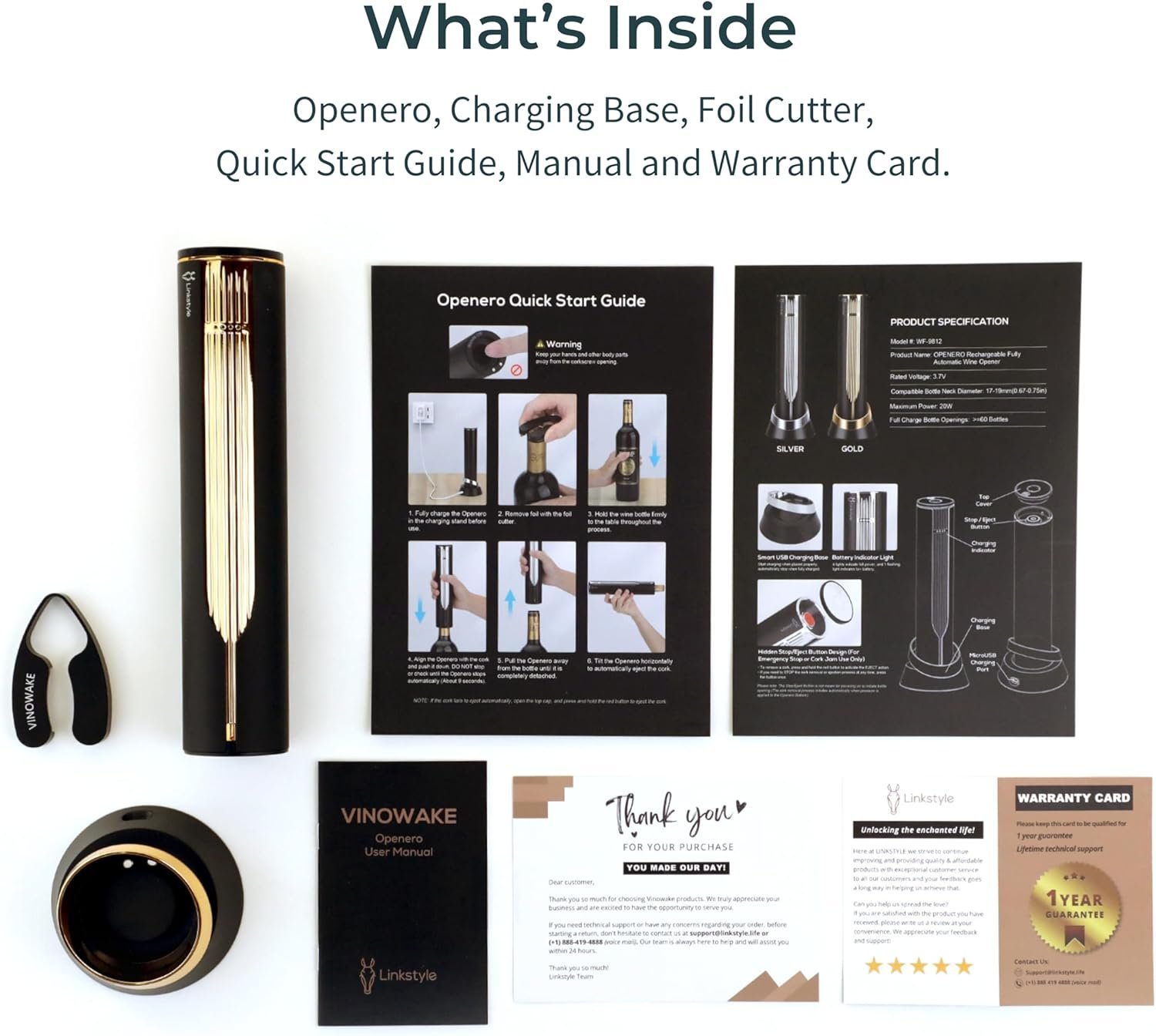 【Backed by the LINKSTYLE Guarantee】: At LINKSTYLE, we prioritize quality and customer satisfaction. That’s why we offer lifetime technical support and a 1-year warranty covering all mechanical and technical defects. With our commitment to excellence, you can enjoy your wine experiences worry-free. This electric wine bottle opener is the ultimate combination of style, functionality, and durability, making it a standout gift for wine enthusiasts and a staple in any wine accessory collection.