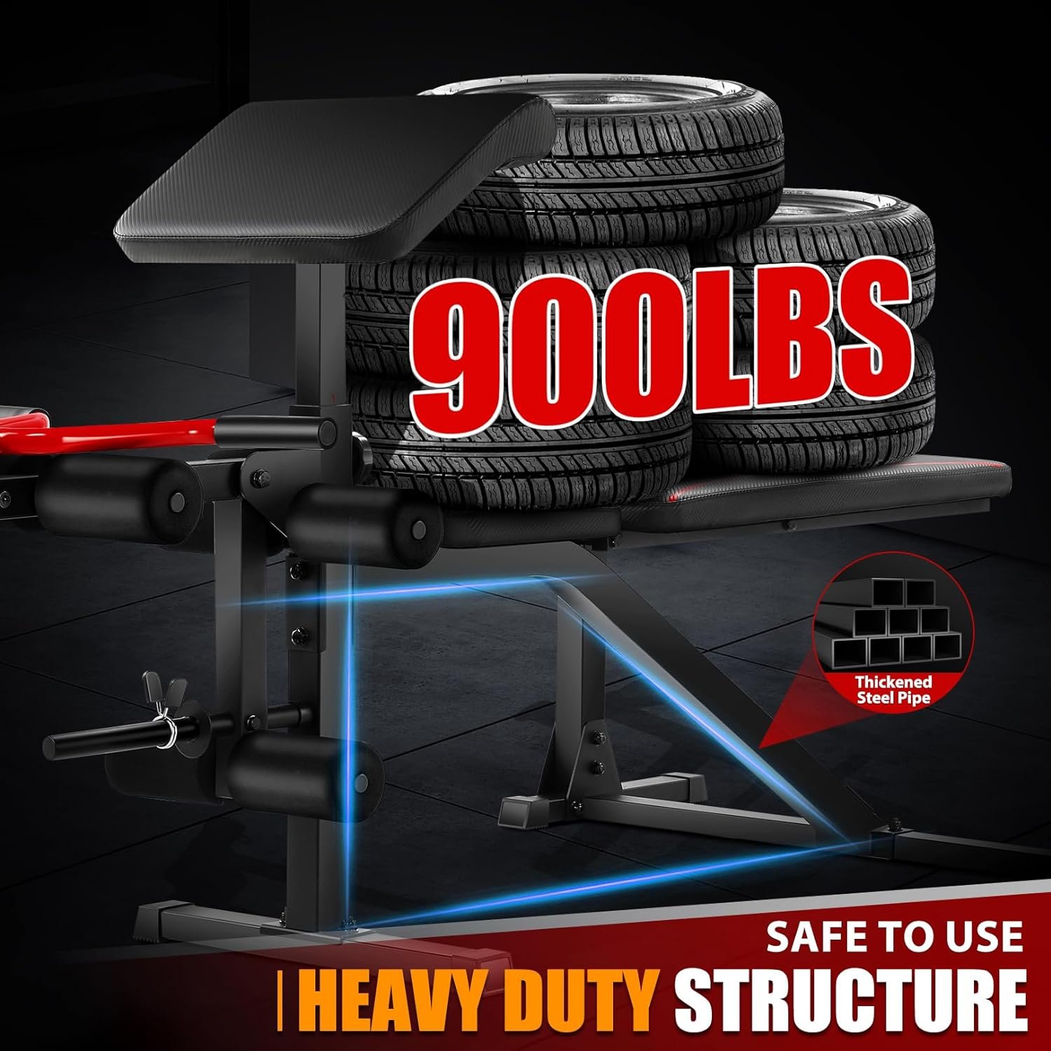 【900lbs Max Weight Capacity】The OPPSDECOR Weight bench adopts a stable triangular structure and has a non-slip base at the bottom, making its maximum weight capacity reach 900lbs.