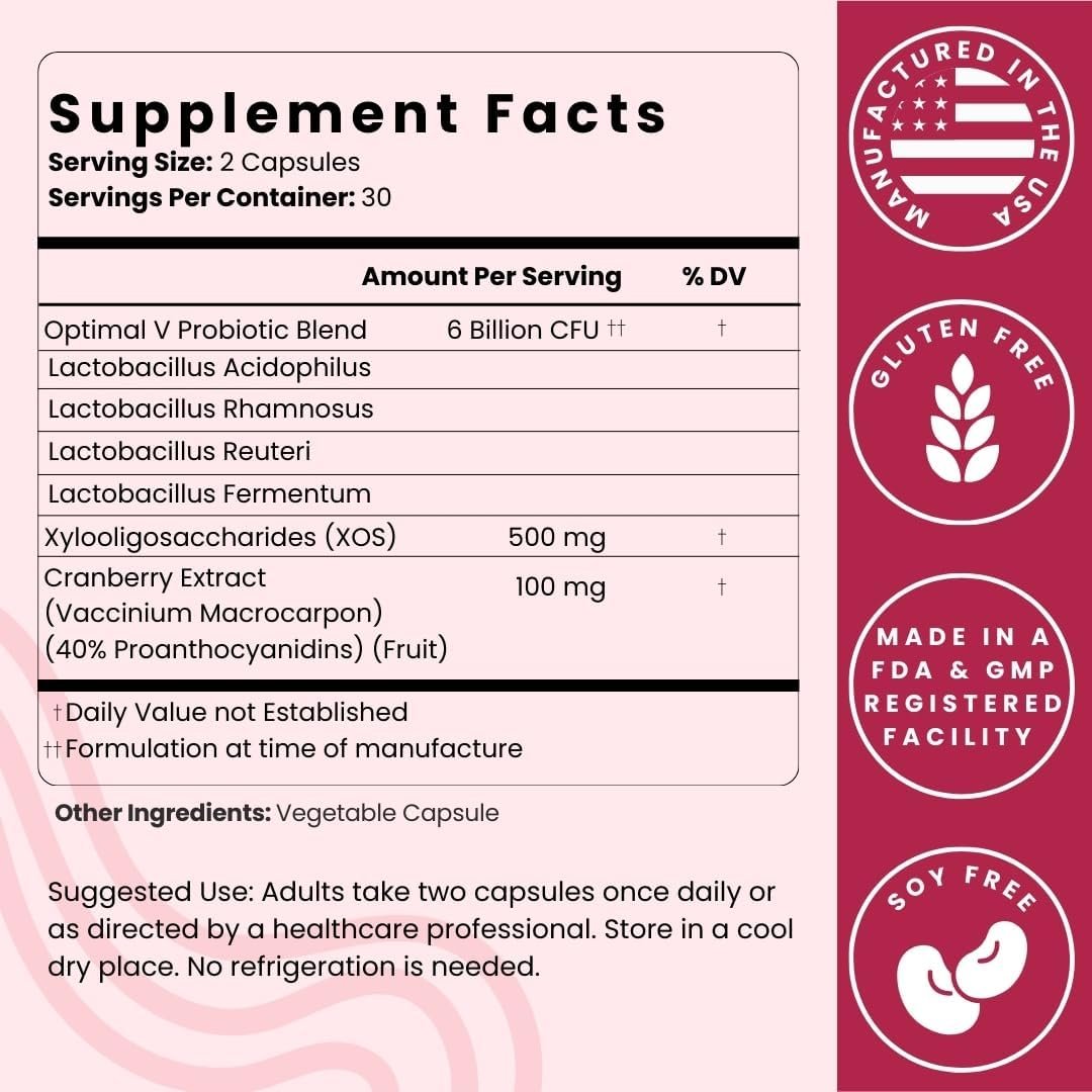 Comprehensive Vaginal Health: The combination of cranberry extract, probiotic Lactobacillus Blend, and xylooligosaccharide creates a comprehensive approach to vaginal health. This supplement aims to address multiple aspects of feminine wellness, providing support for urinary tract health, promoting a balanced microbiome, and contributing to overall comfort and confidence.