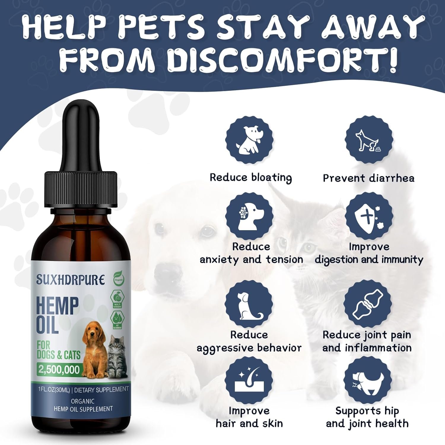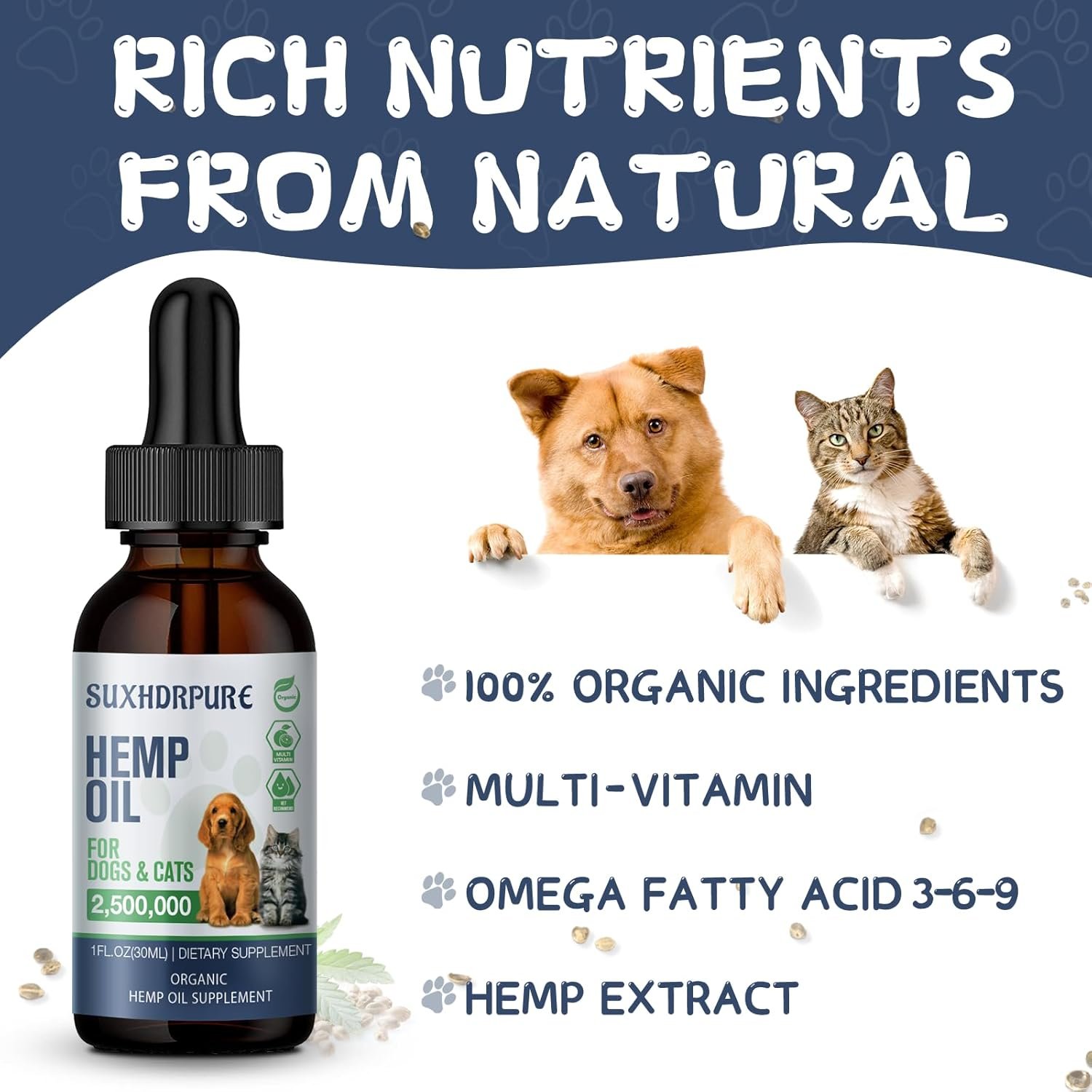 COMPREHENSIVE NUTRITION FORMULA: Our Omega 3 6 9 Pet Oil contains a variety of essential fatty acids such as Omega-3, Omega-6, and Omega-9 to provide comprehensive nutritional support for your dog or cat.