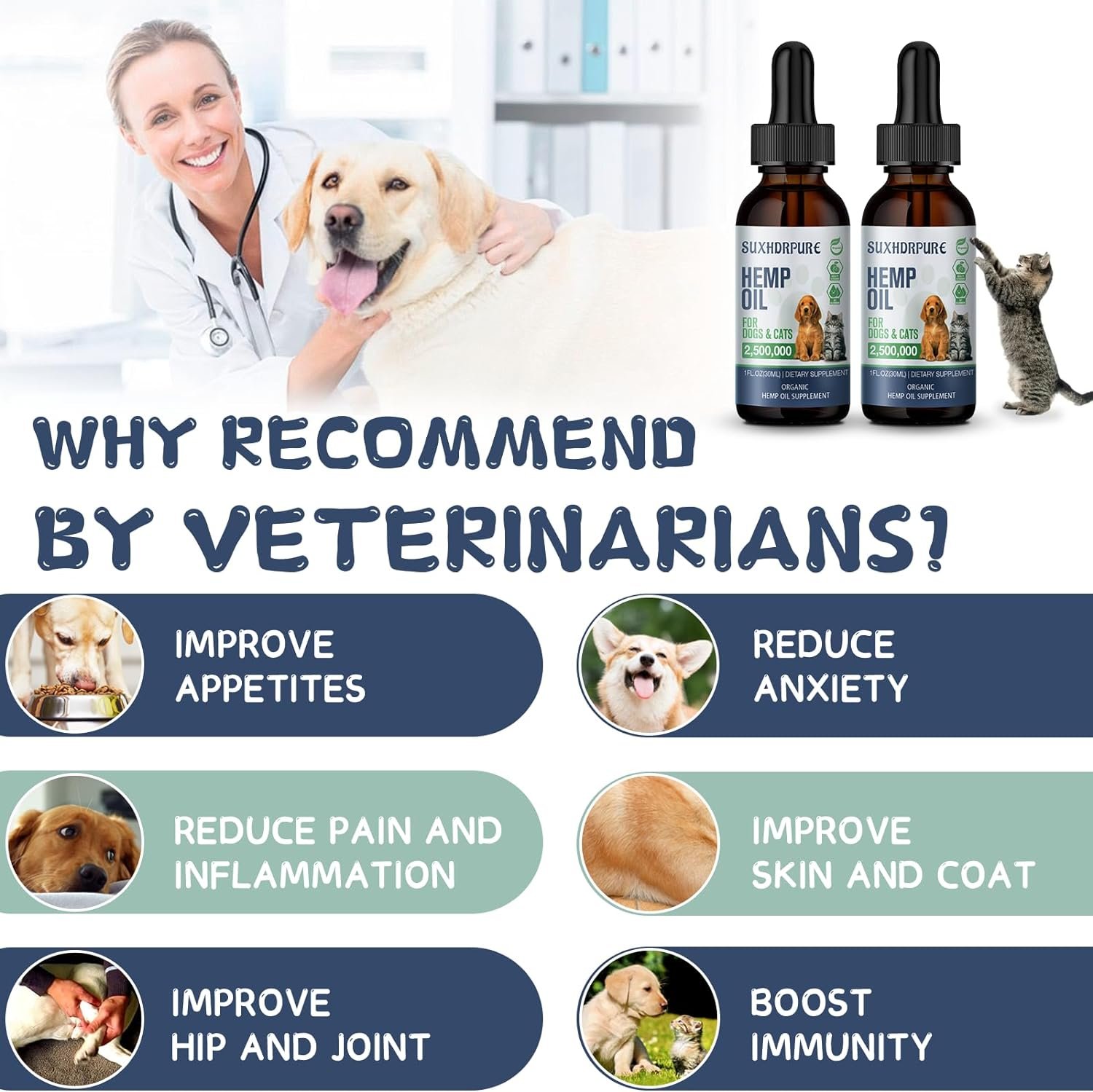 Customers find that the hemp oil helps their pets with anxiety and stress. It is effective, easy to administer, and has a pleasant taste. They also mention it improves sleep quality and mobility.