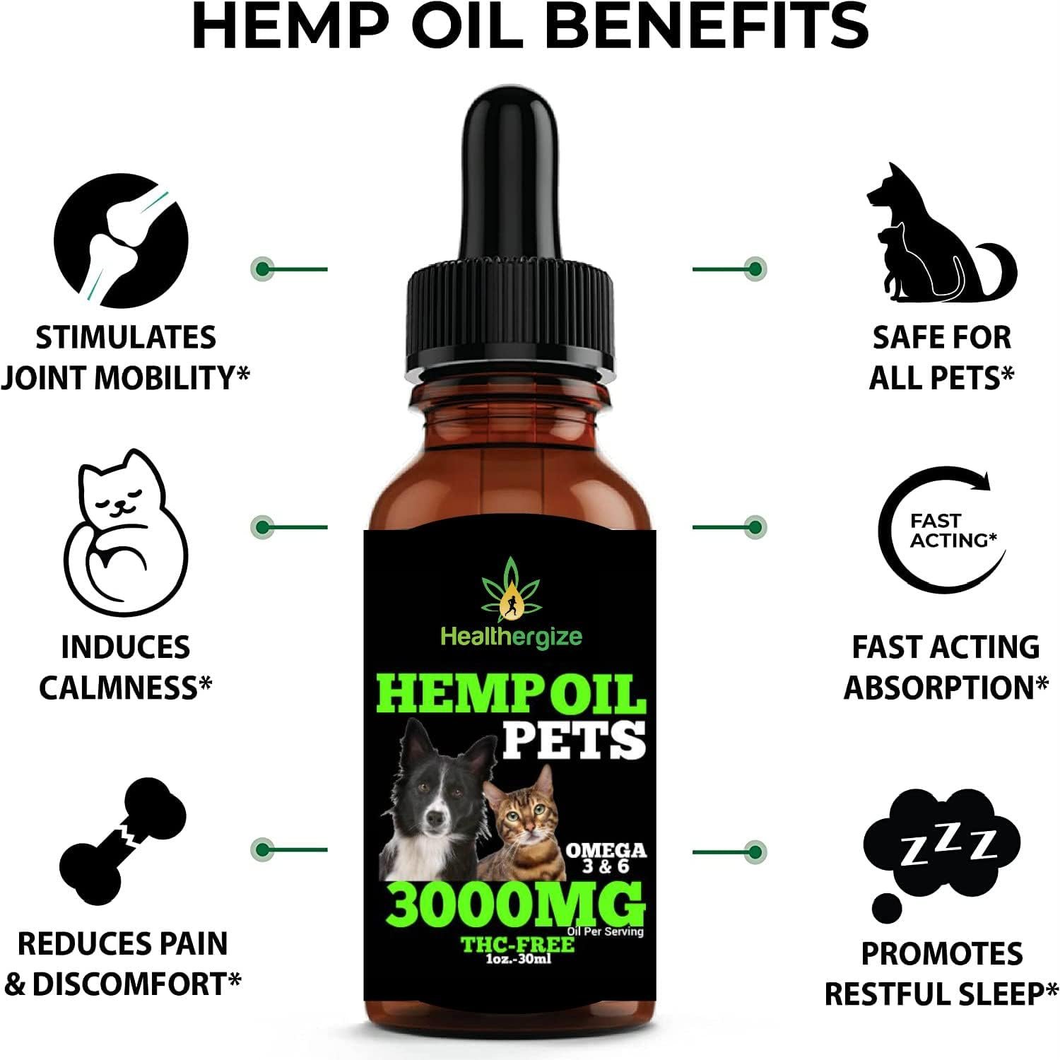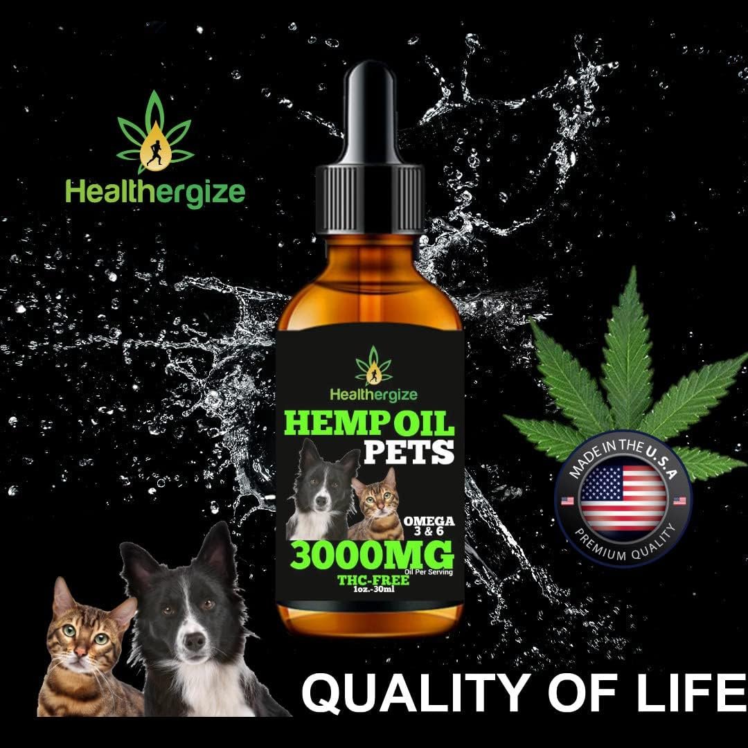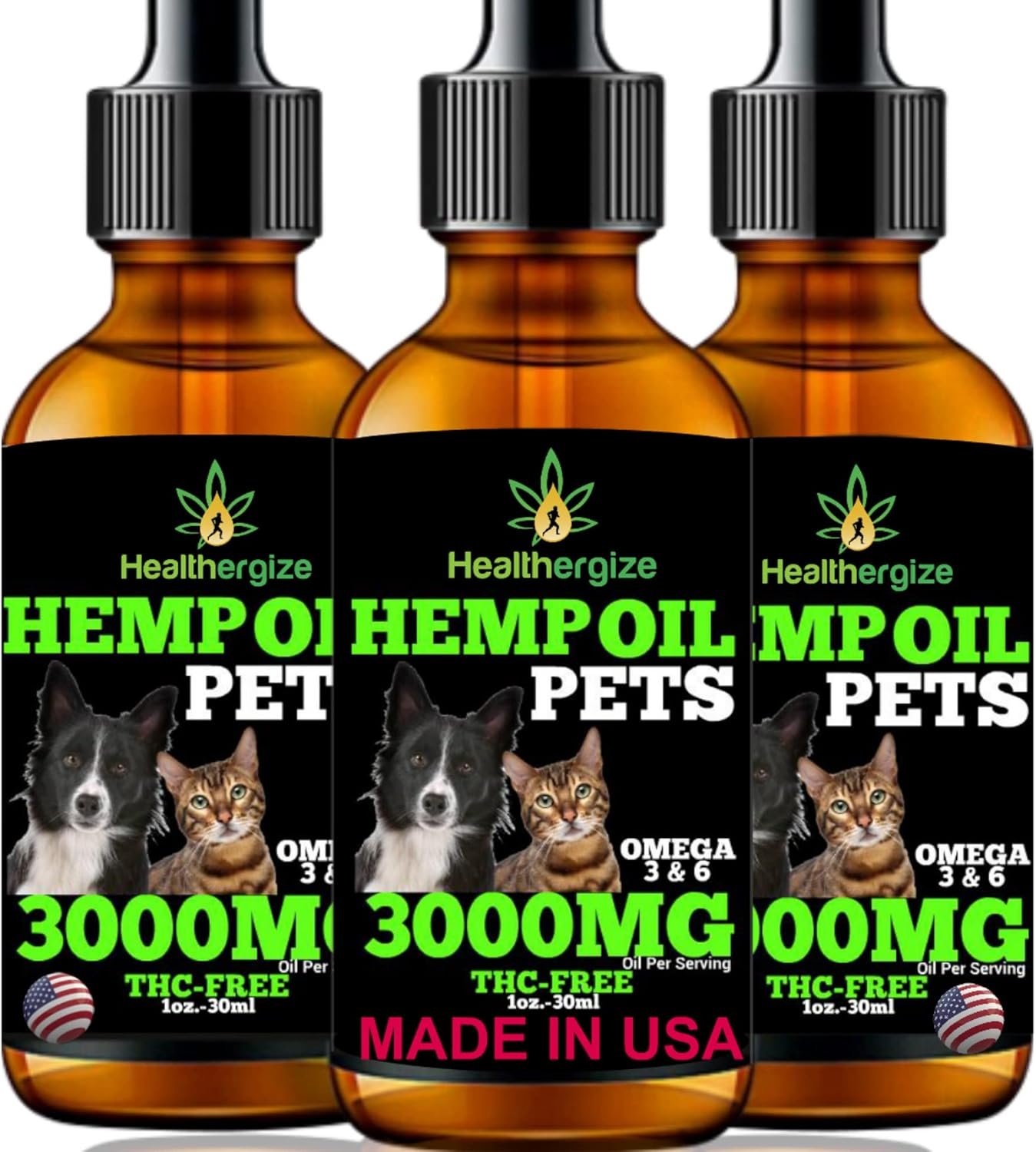 Healthergize brings you the finest pet products available! Enjoy our Natural Premium Hemp Oil For Dogs And Cats-Great for daily use for help with separation anxiety, calm, sleep , relax, skin and fur health, healthy overall day.