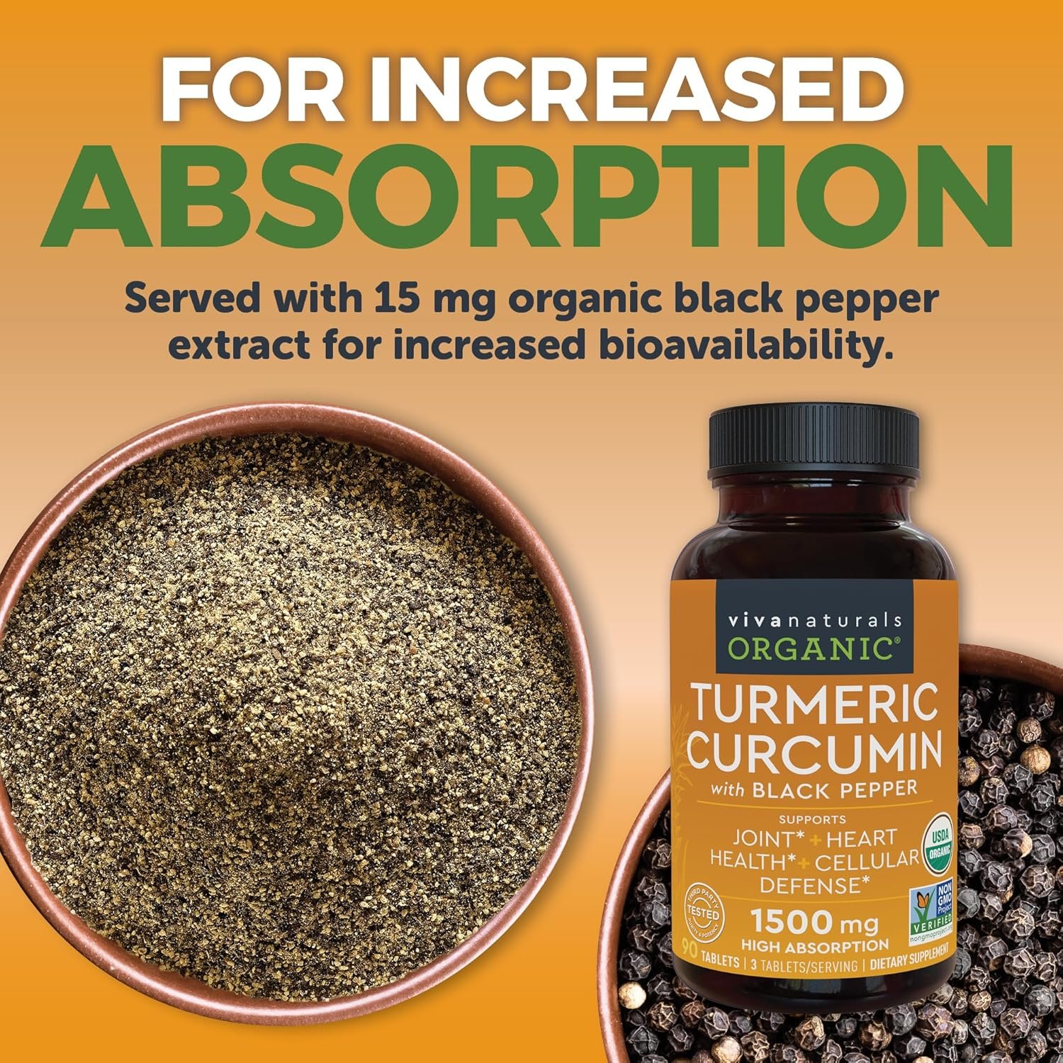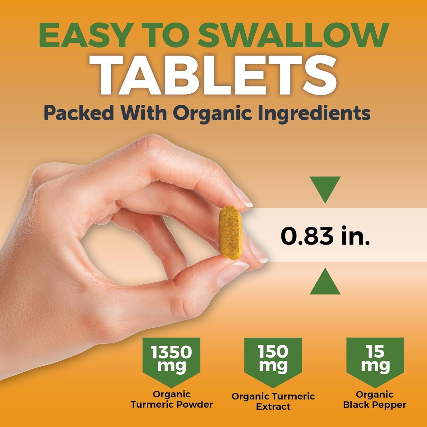 Organic Turmeric Supplement 1500 mg – Turmeric Pills for Joint Support and Cellular Defense – Turmeric Curcumin with Black Pepper for Increased Absorption – High Potency Turmeric Curcumin Supplement