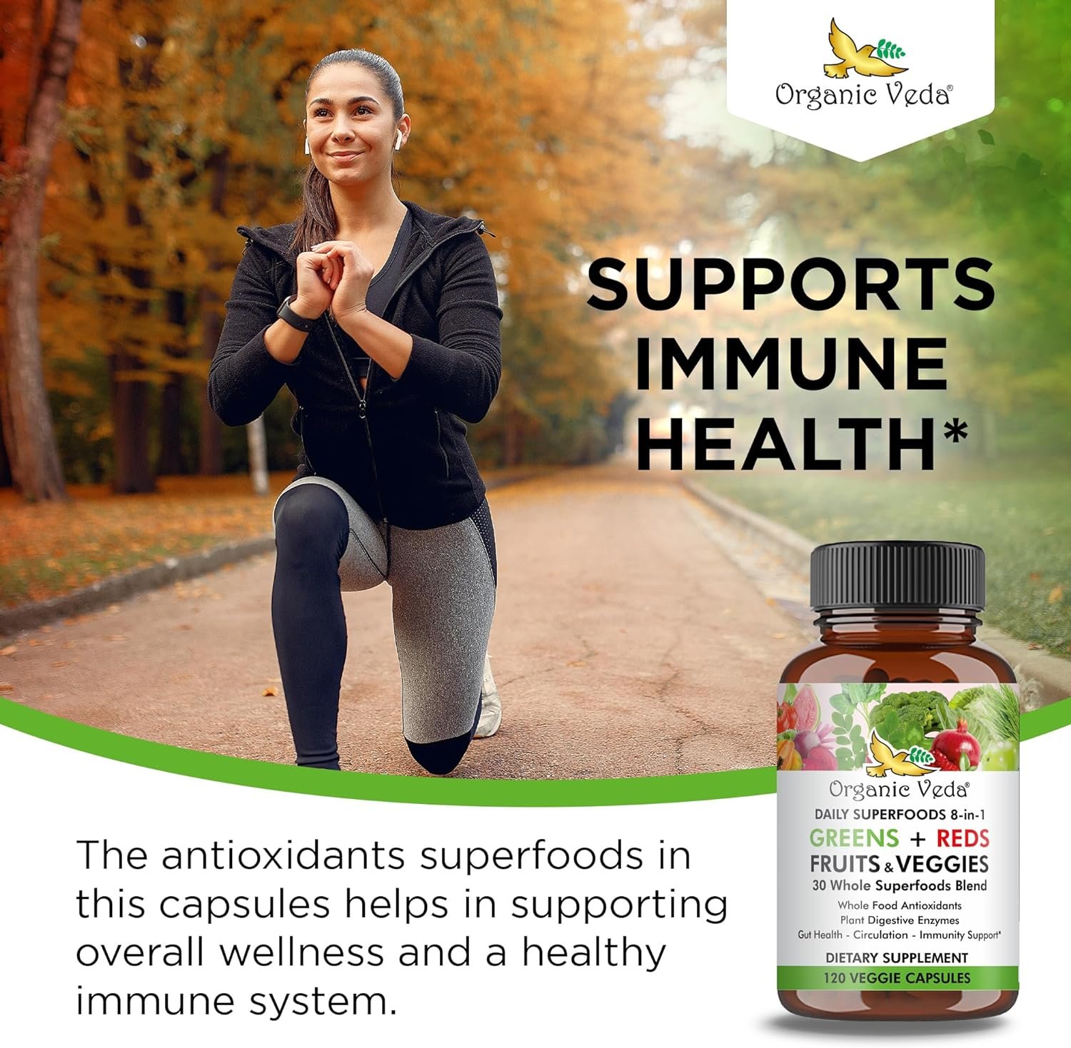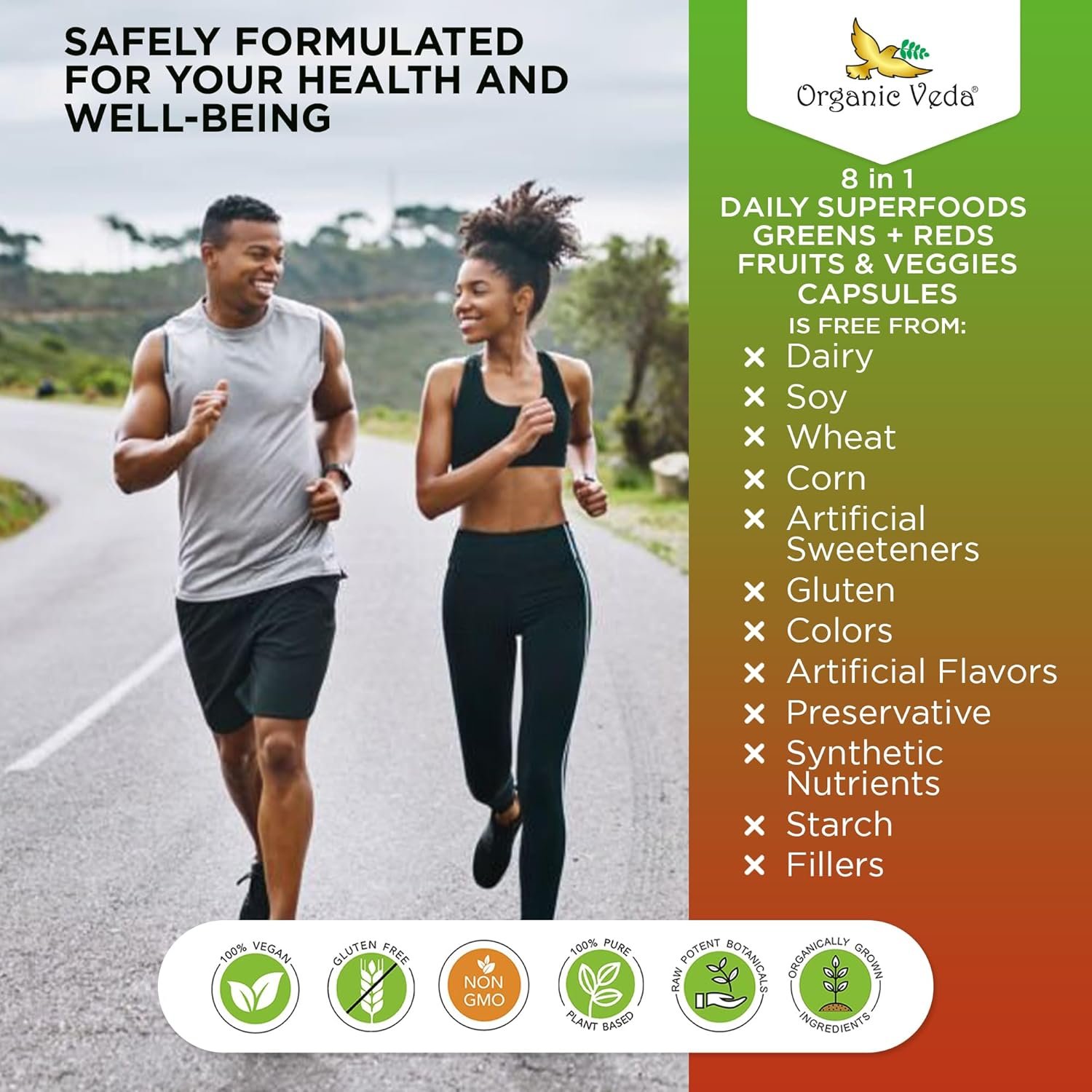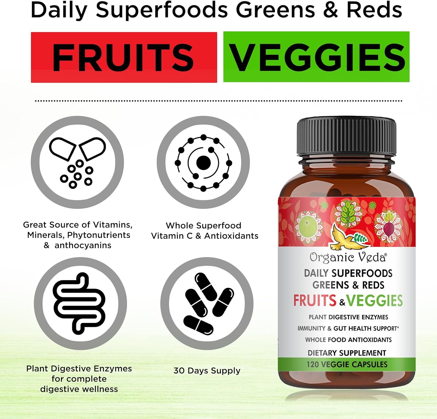 Greens Supplement with Reds: Our fruits and veggies supplements contain strawberry, carrot, pink guava, beetroot, apple, mango, tomato, and pomegranate for a burst of numerous wellness benefits