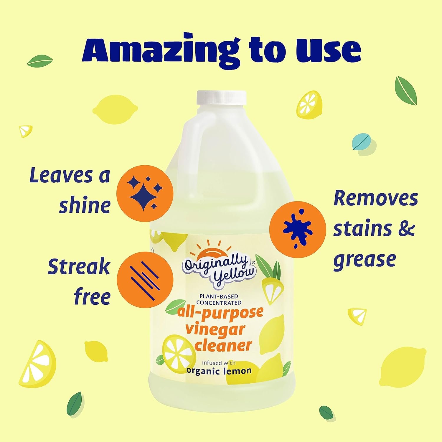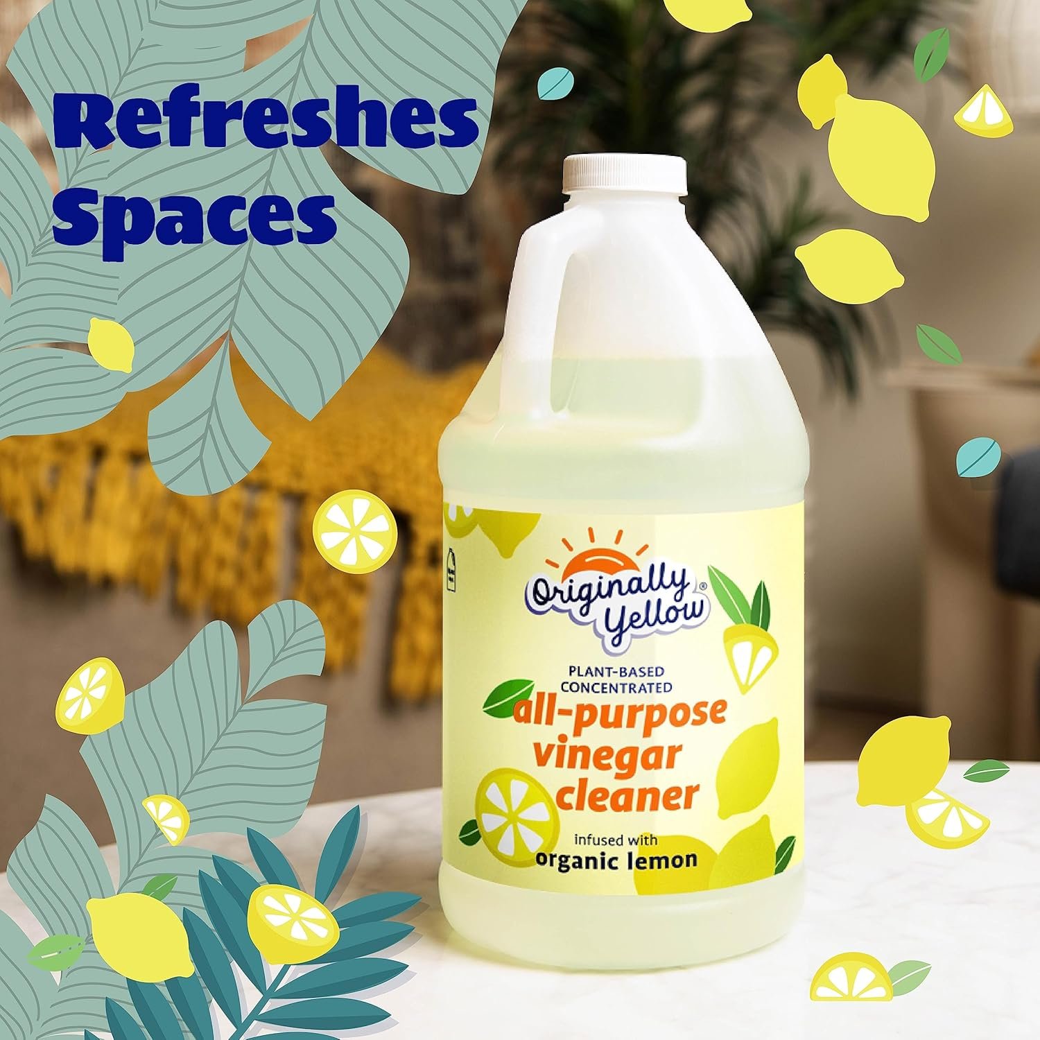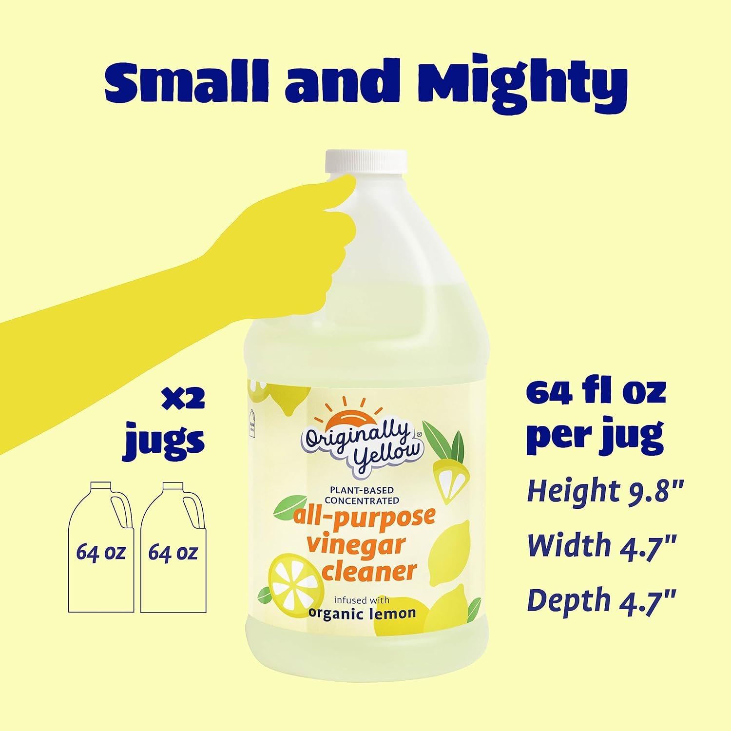 Originally Yellow All-Purpose Cleaning Vinegar for Home Floor Cleaning Solution with Distilled Vinegar | Infused with Organic Lemon | Plant-Based House Cleaning Supplies, 64 Fl Oz (2-Pack)