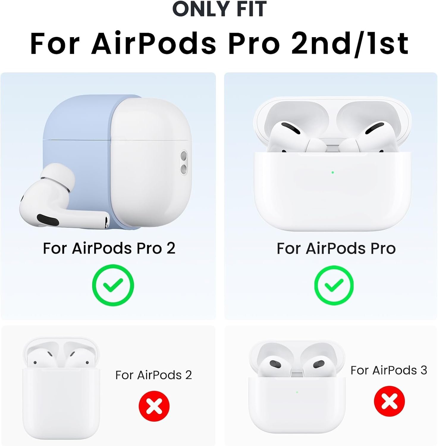 Perfectly Designed for AirPods Pro 2nd/1st: This soft silicone case is specifically designed to provide a perfect fit for AirPods Pro 2nd/1st Generation. The precise mold and high-quality silicone materials ensure a secure and snug fit, offering reliable protection against dusts, dirts, scratches, bumps, and daily wear and tear.