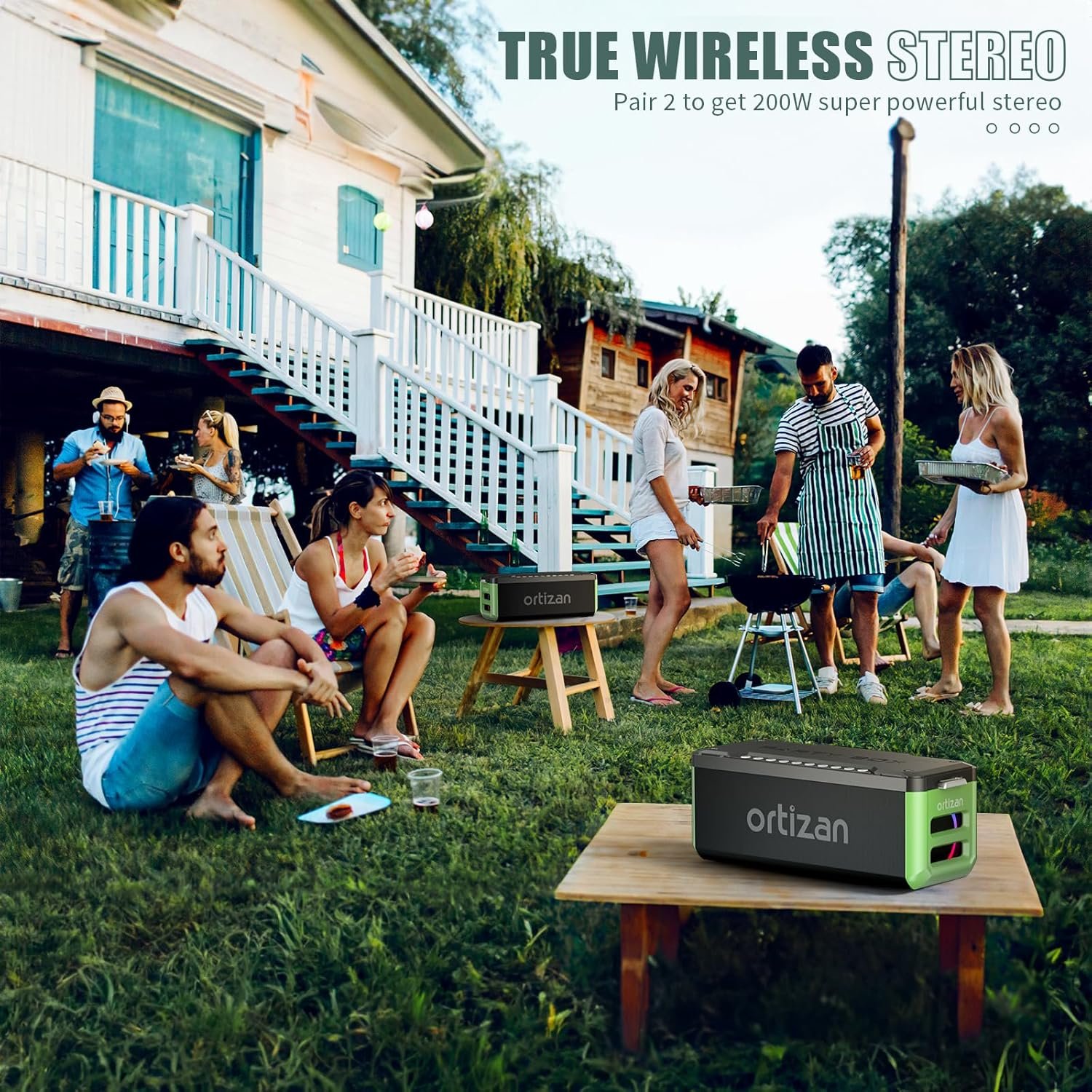 Ortizan Portable Bluetooth Speaker Wireless, 100W Loud Sound, Monstrous Bass, IPX7 Waterproof, 24H Playtime, Power Bank, LED Lights, USB, EQ, Large Outdoor Subwoofer Speaker for Party, Camping