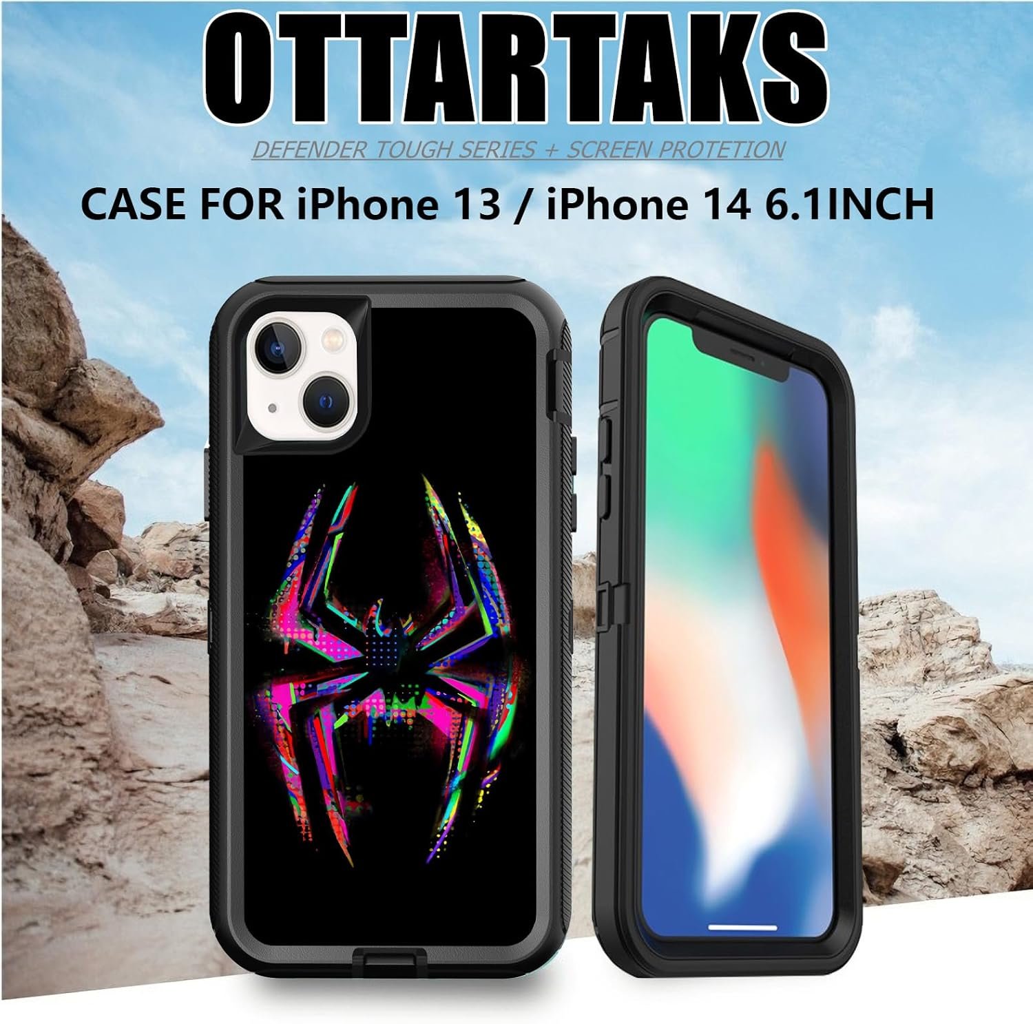 Be the first to review “OTTARTAKS Compatible for iPhone 14 13 Case with Screen Protector, Spider Cool Full Body Heavy Duty Phone Case for Boys Men Black Shockproof 3-Layer Protective Case 6.1inch”