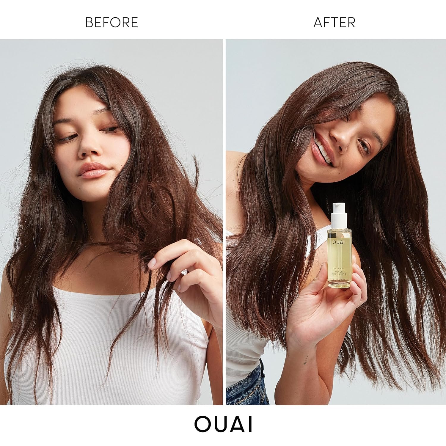 OUAI Hair Oil – A powerful, multitasking oil for every occasion. It protects from color fading and heat/UV damage, smooths split ends and frizz, and adds next-level hair gloss. Protects from heat damage up to 450°F / 232°C.