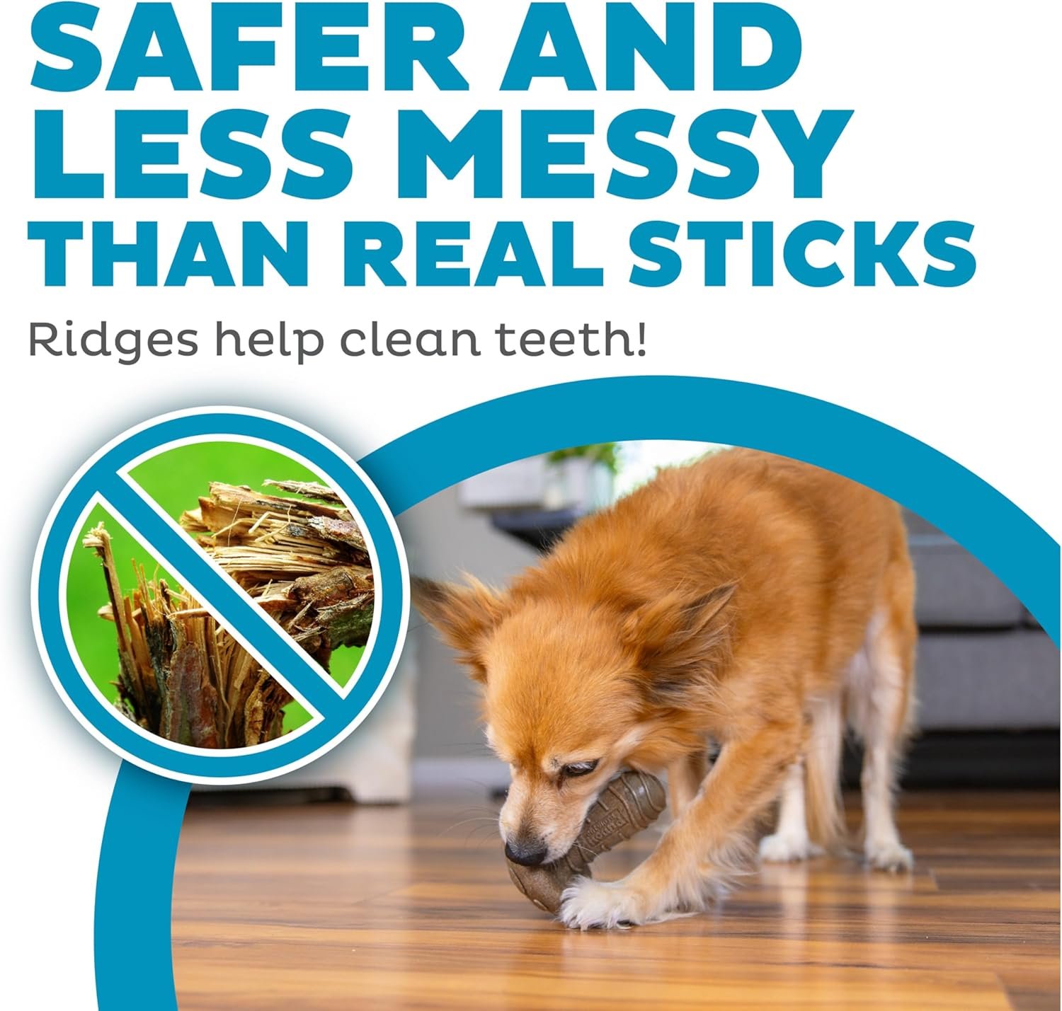 Our premium dog enrichment toy is made with real wood, but safer and less messy than sticks