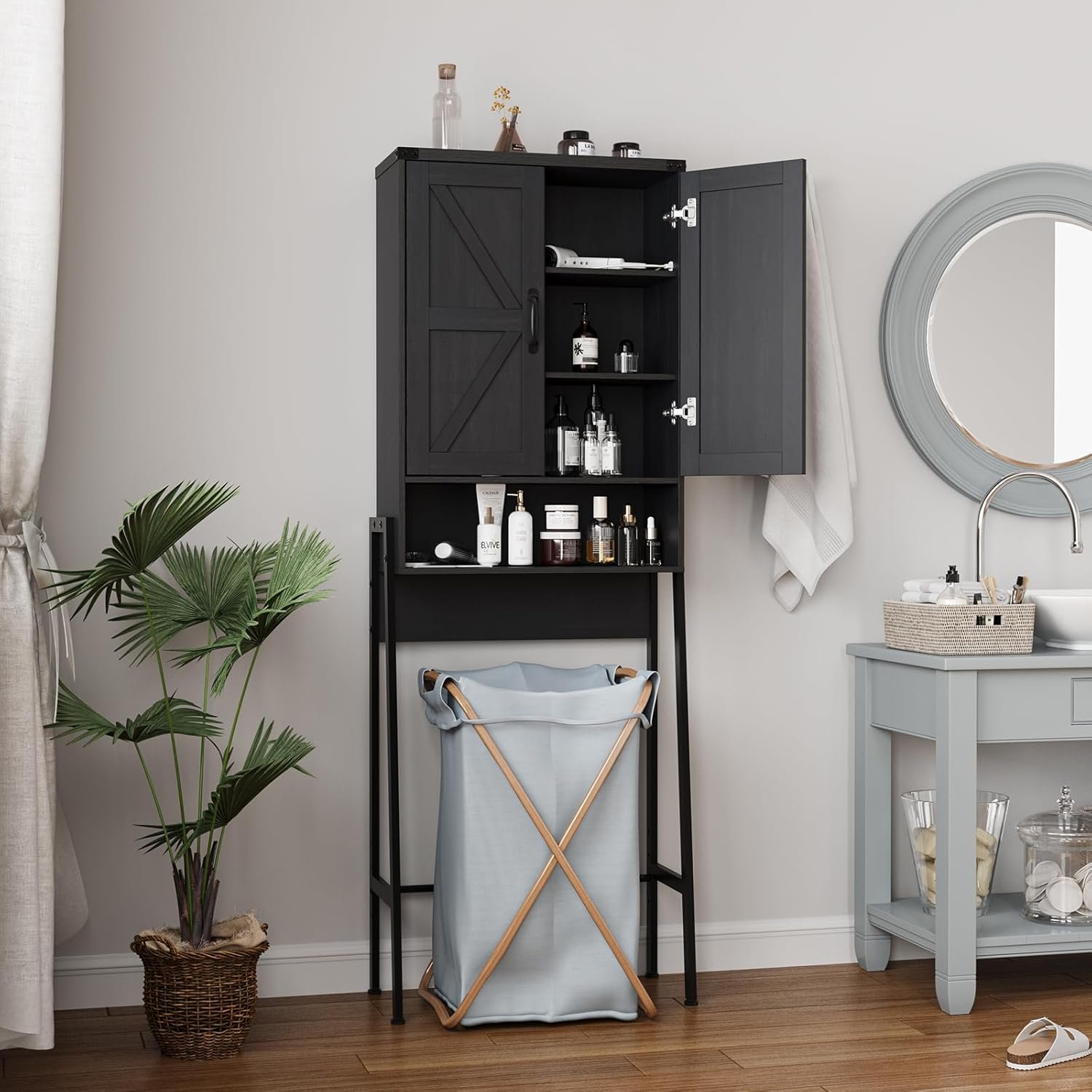 【Multifunctional Organization】Over toilet storage cabinet organizer , you can make your toilet,laundry room and living room more tidy. The open area is easy to access and the classic design complements most home décor and shows off your home style.
