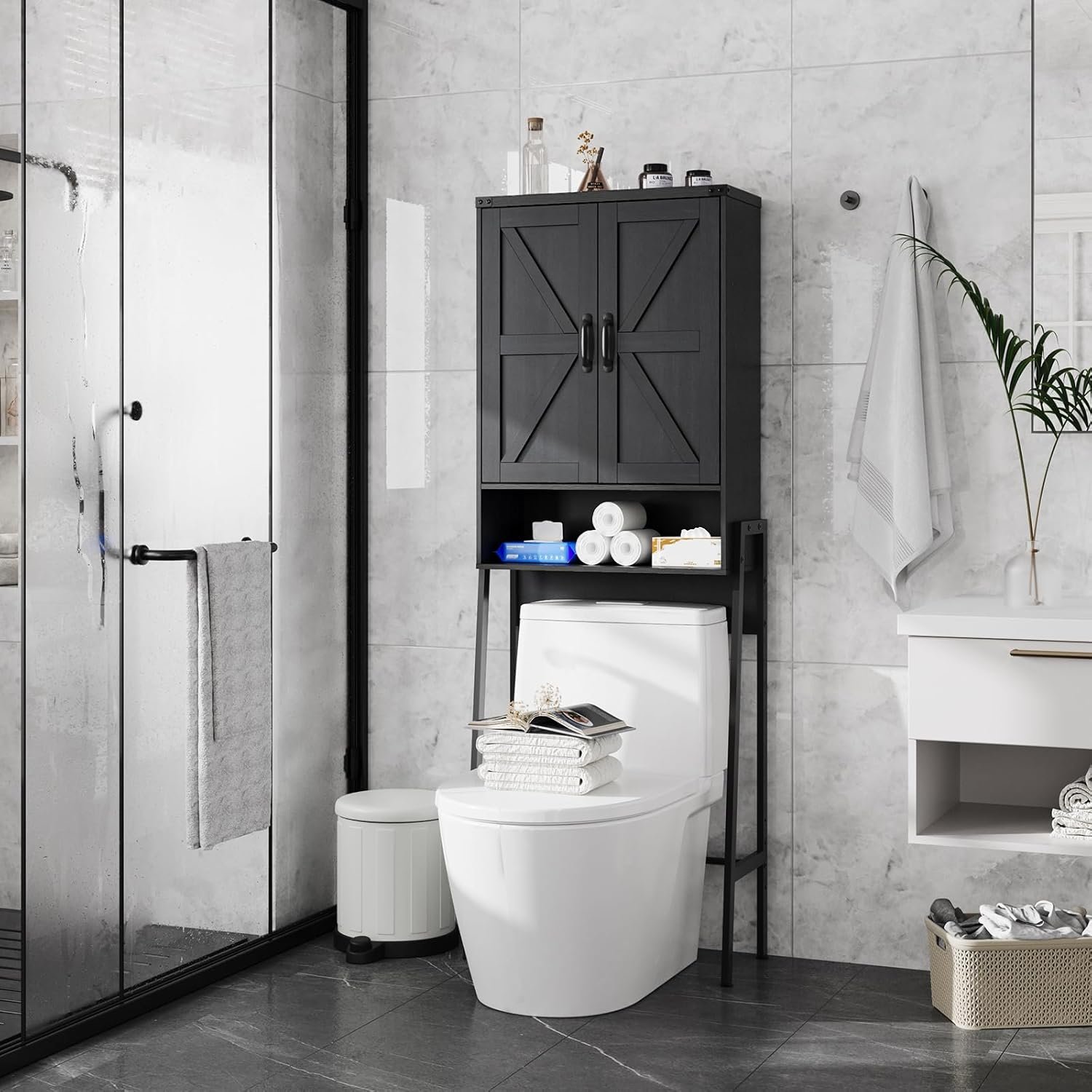 The over toilet storage cabinet has a wide range of uses to meet your daily needs