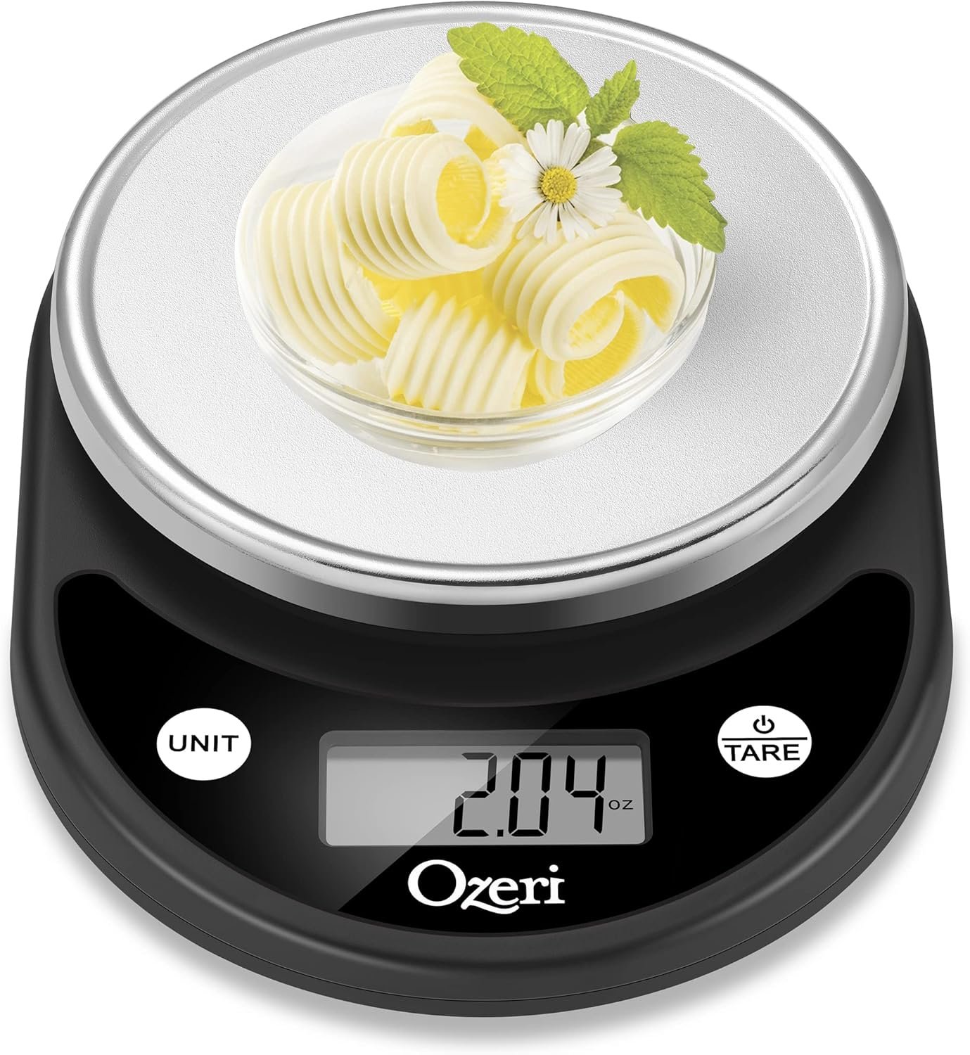 Accurate, elegant, easy-to-use kitchen scale for all your diet and health goals – weighs up to 11.24 lbs (5100 grams) with precise graduations of 0.04 oz (1 gram).