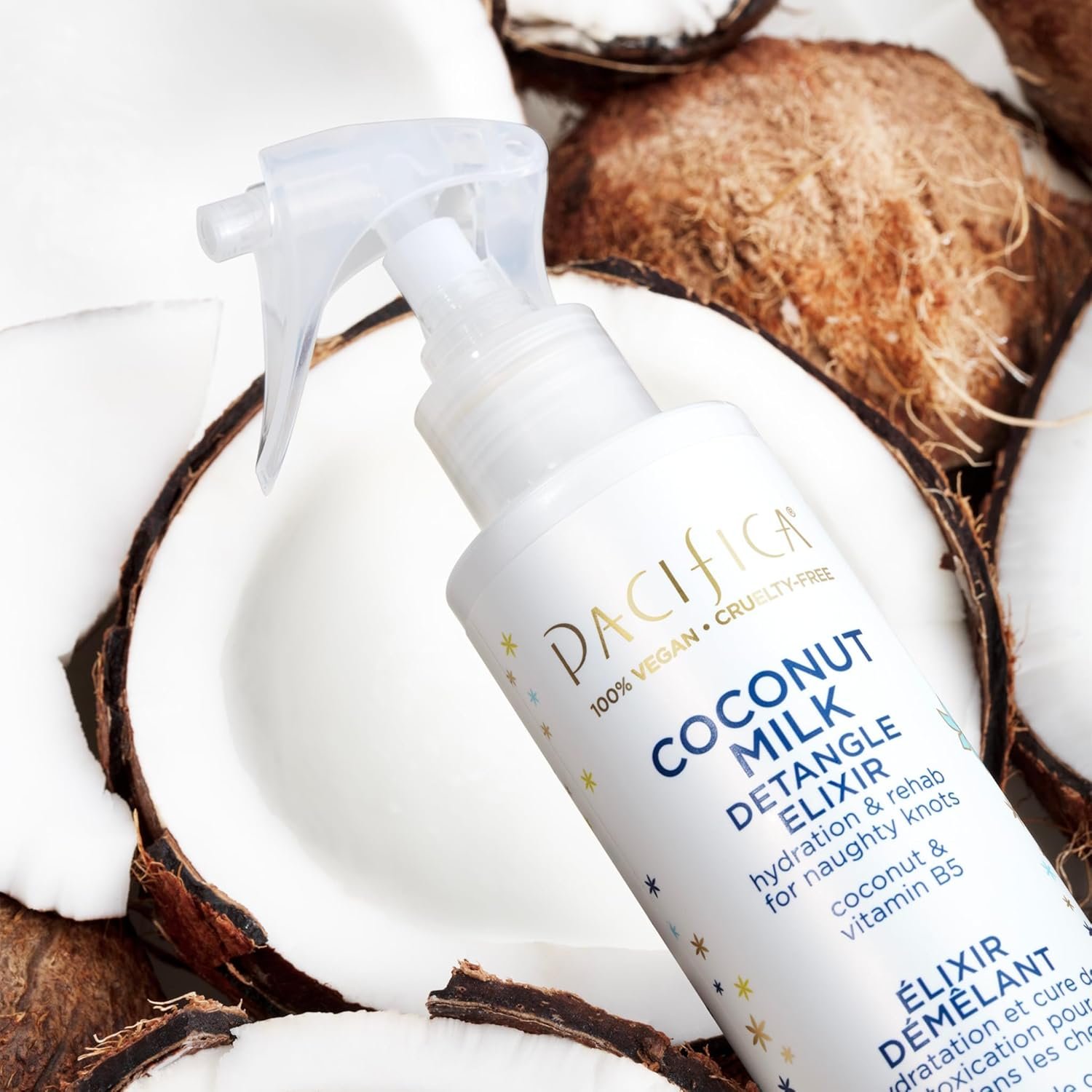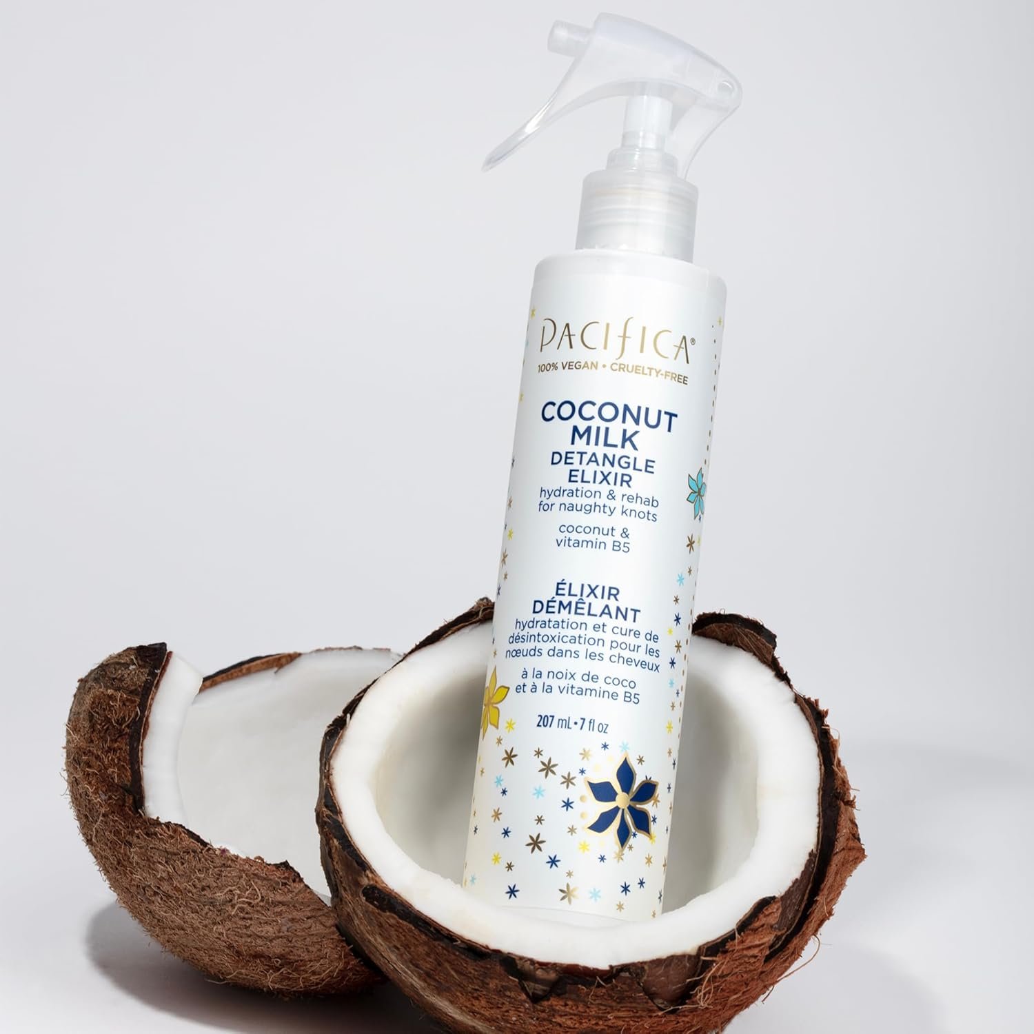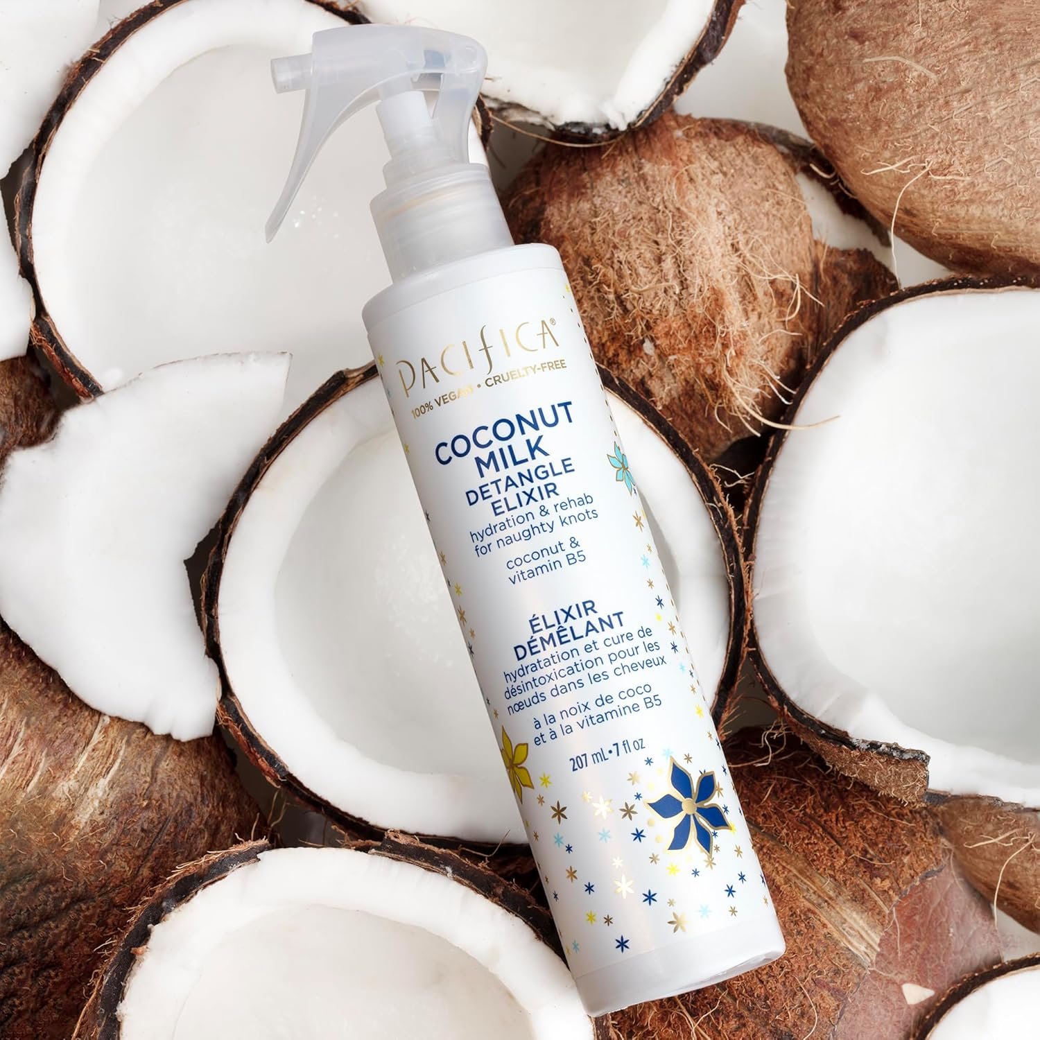 Transform your hair with Pacifica Beauty’s Coconut Milk Detangle Elixir. This versatile detangler spray and leave-in conditioner is designed to hydrate and rehabilitate your hair, leaving it soft, smooth, and free from tangles. Infused with the fresh scent of coconut and enriched with nourishing Vitamin B, this elixir provides deep conditioning without weighing down your hair’s natural bounce.
